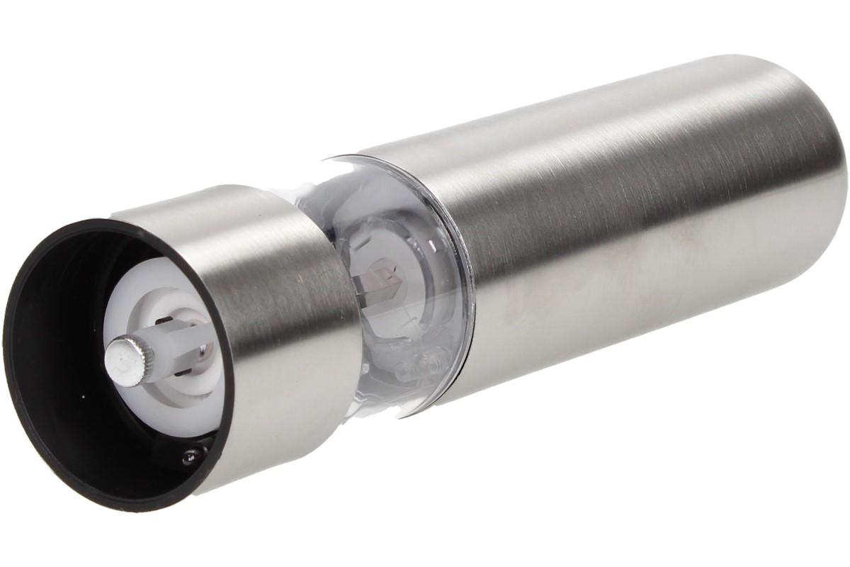 Elektrický mlýnek na koření - vhodný zejména pro hrubozrnnou sůl a všechny druhy pepře pro domácí použití, ale i do restaurací a hotelů. Elektrický mlýnek ovládáte velmi snadno jednou rukou, díky tomu je velmi praktický přímo při vaření, druhá ruka Vám zůstane vždy volná na míchání pokrmu. Stiskem tlačítka uvedete mlýnek do provozu, zároveň se rozsvítí světlo. V dolní části elektrického mlýnku je kolečko, kterým si nastavíte hrubost mletí, od hrubého až po velmi jemné.