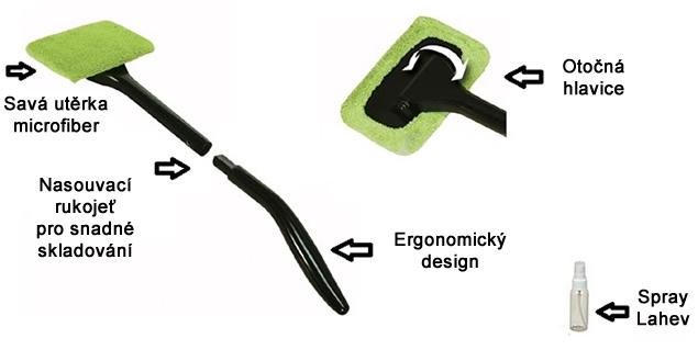 Tenhle malý zázrak je zdatný pomocník a zvládne efektivně vyčistit všechny okna v autě a vám tím může zachránit život! S touhle stěrkou, díky speciální ergonomické rukojeti a otočné hlavici, dosáhnete už úplně všude kam potřebujete. Díky otočné hlavici, není pro tuhle stěrku žádný úhel a sklon oken už problém, je tudíž vhodná pro všechny typy aut. Savá utěrka z materiálu z microfiber si poradí z jakoukoliv špínou i bez vody. Přesto pro vás v balení máme kromě náhradní savé utěrky i praktickou lahvičku, kterou si můžete naplnit vodou nebo vaším oblíbeným přípravkem na čištění skel. Po použití se rukojeť jednoduše složí a vejde se do dveří, nebo do kastlíku, takže nezabere žádné místo.