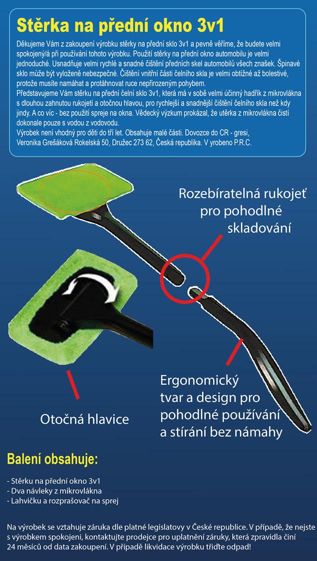 Stěrka na přední okno 3v1 s otočnou hlavicí - obsah balení: