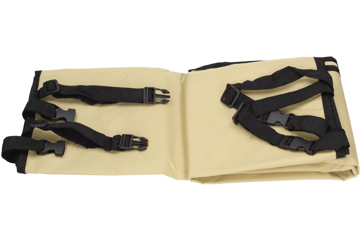 - Bezpečnost: 4 popruhy na uchycení s plastovou přeskou, otvory pro uchycení bezpečnostních pásů