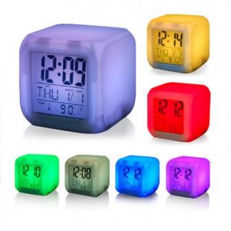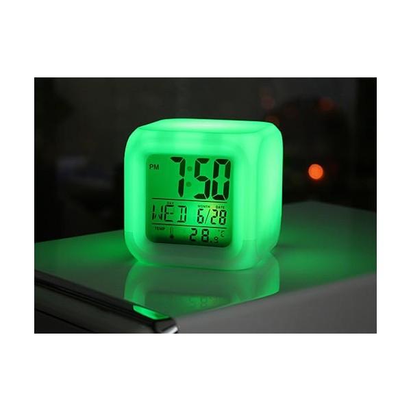 Klasický budíkn s funkcní měnění barev. Budík zobrazuje čas, teplotu, datum. Na výběr 8 melodií pro buzení