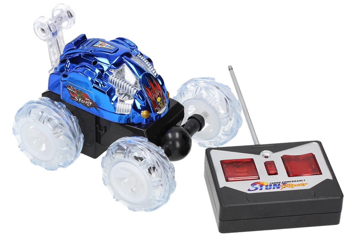 Barevné autíčko na dálkové ovládání má otočnou přední nápravu a jezdí ve všech polohách, je celé podsvícené.