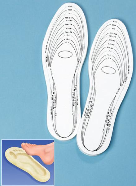 Vložky jsou univerzální a padnou každému s velikostí od 35 do 45. Díky předtištěné šabloně si je totiž sami snadno a rychle zastřihnete přesně podle velikosti vašeho chodidla a boty.