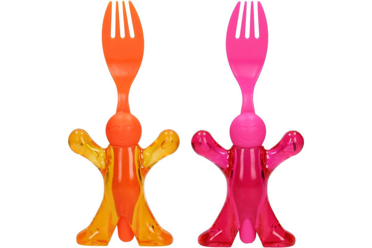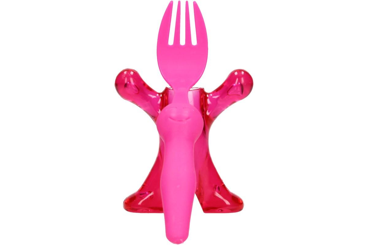Stojánek na dětskou vidličku ve tvaru roztomilého barevného panáčka, vyrobeného z průhledného tvrzeného plastu, potěší každoé dítě a pomůže mu používat příbor a jíst samo s radostí. Do stojánku se dává plastová vidlička, ktráje součástí balení. Vidlička má tvrdou rukojeť ve velikosti akorát do dětské ručky, uprostřed zesílenou, hlavičkou s úsměvem, aby dětem ruka neklouzala příliš nízko. Nabírací část vidličky je z měkčího plastu než tělo vidličky, a to proto aby nedošlo ke zranění dítěte a zároveň mu tak i usnadilo manipulaci s příborem. Pan Vidlička je dodáván pouze v růžové a oranžové barvě.
