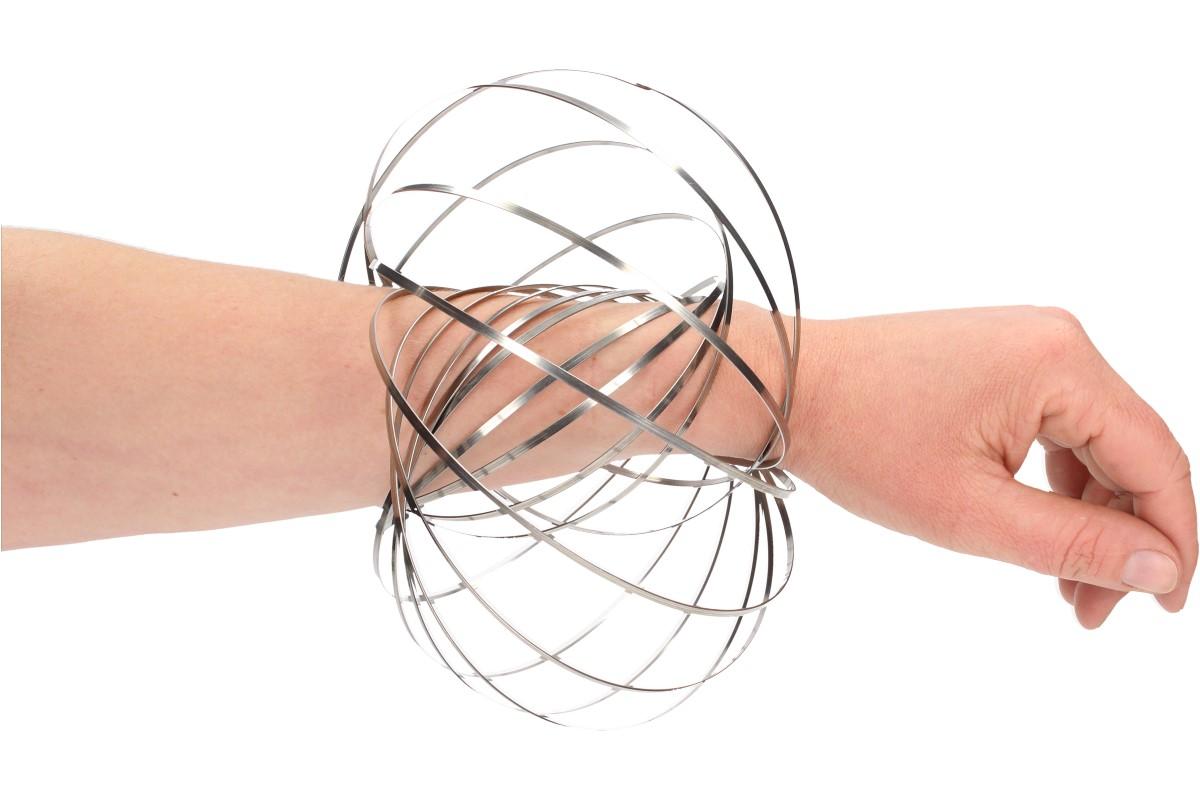 Jedná se o letošní novinku a hit roku. Lehká kovová hračka ve tvaru kruhů, která se mění pod rukama. Hračku můžete libovolně stačovat a opět rozpínat. Navléknete-li si ji na ruku, bude se kolem ní točit a otáčet směrem nahoru i dolů. Když navíc obě ruce spojíte, vytvoříte tak ideální dráhu pro kroužek, který Vám bude cestovat z jedné ruky na druhou. Pozorování tohoto pohybu je magické, díky tomu se Vaše mysl vyčistí, zklidní a stres odejde.