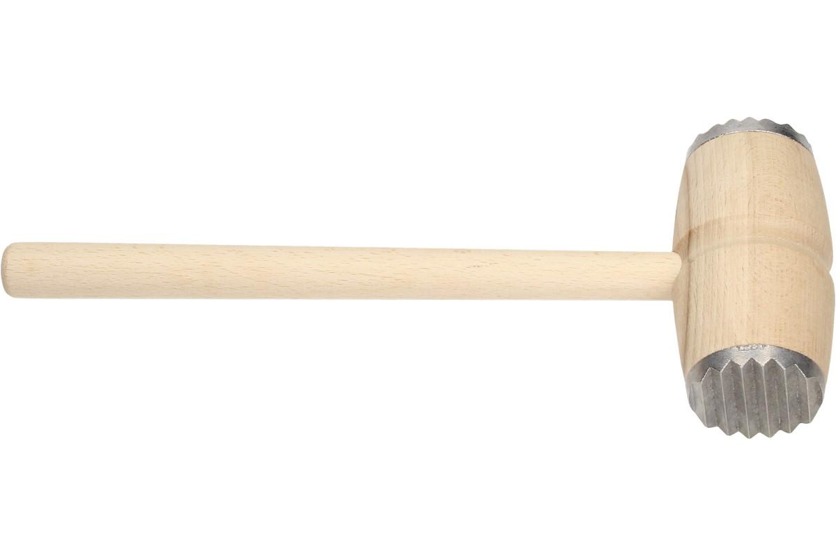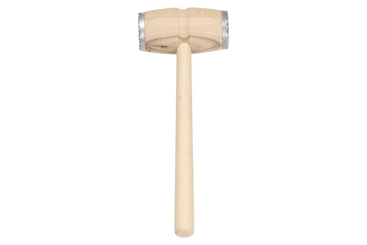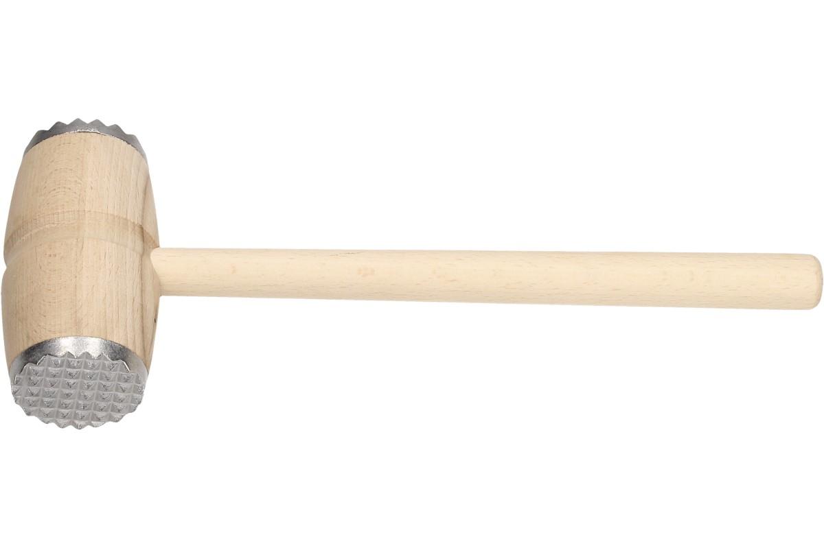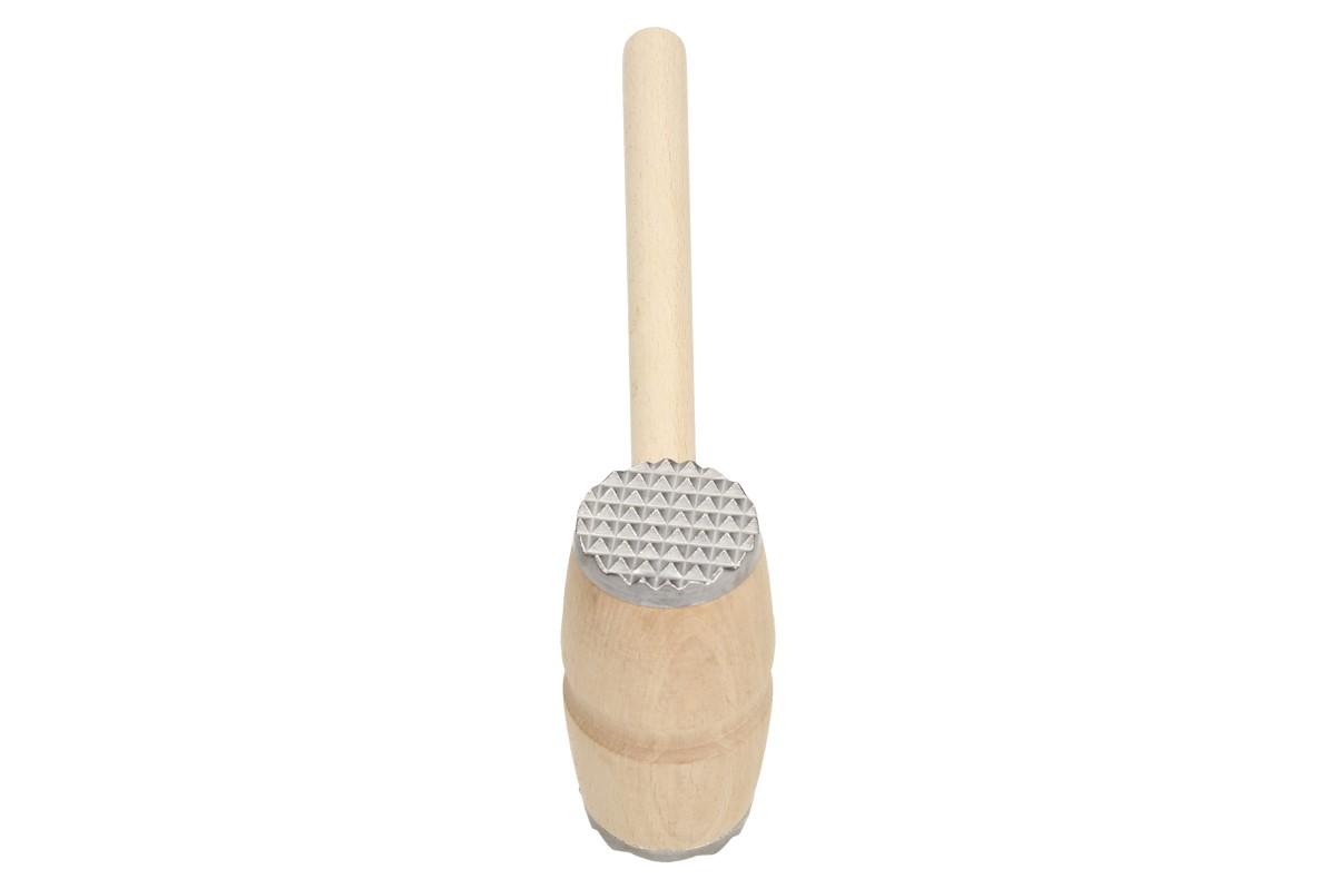 Palička na maso dřevěná s kovovým povrchem dvěmi stranami, vroubkovaná a mřížkovaná. Palička na maso je velice důležitá do každé kuchyně na naklepání masa a řízků. Lze s ní nadrtit i vlašské ořechy a piškoty. Palička měří 29 cm na délku a šířka naklepávací plochy je 5 cm.