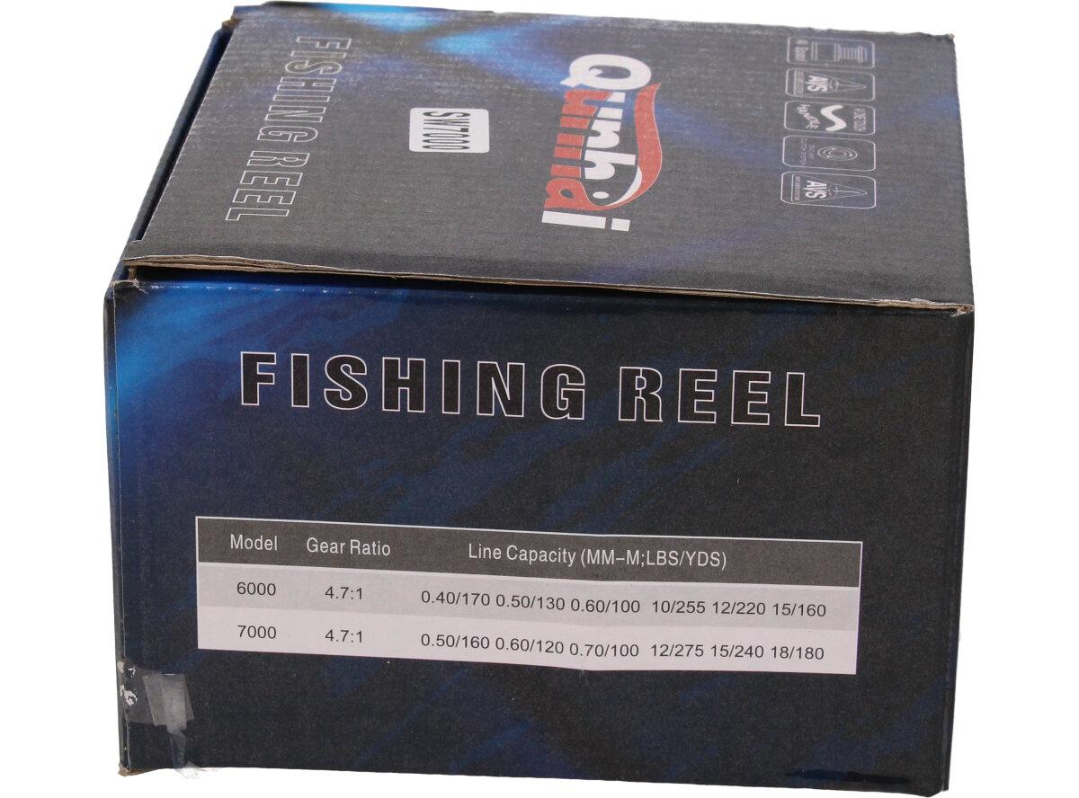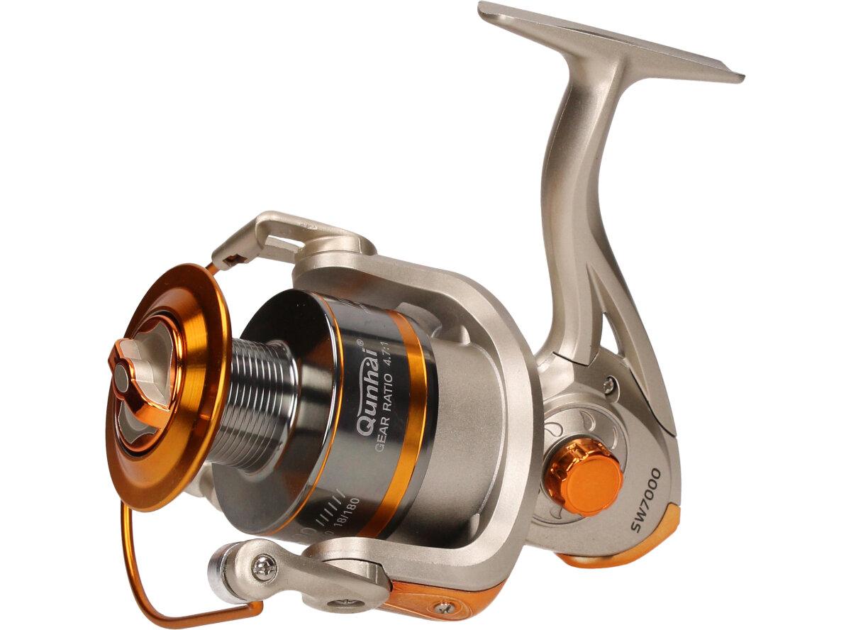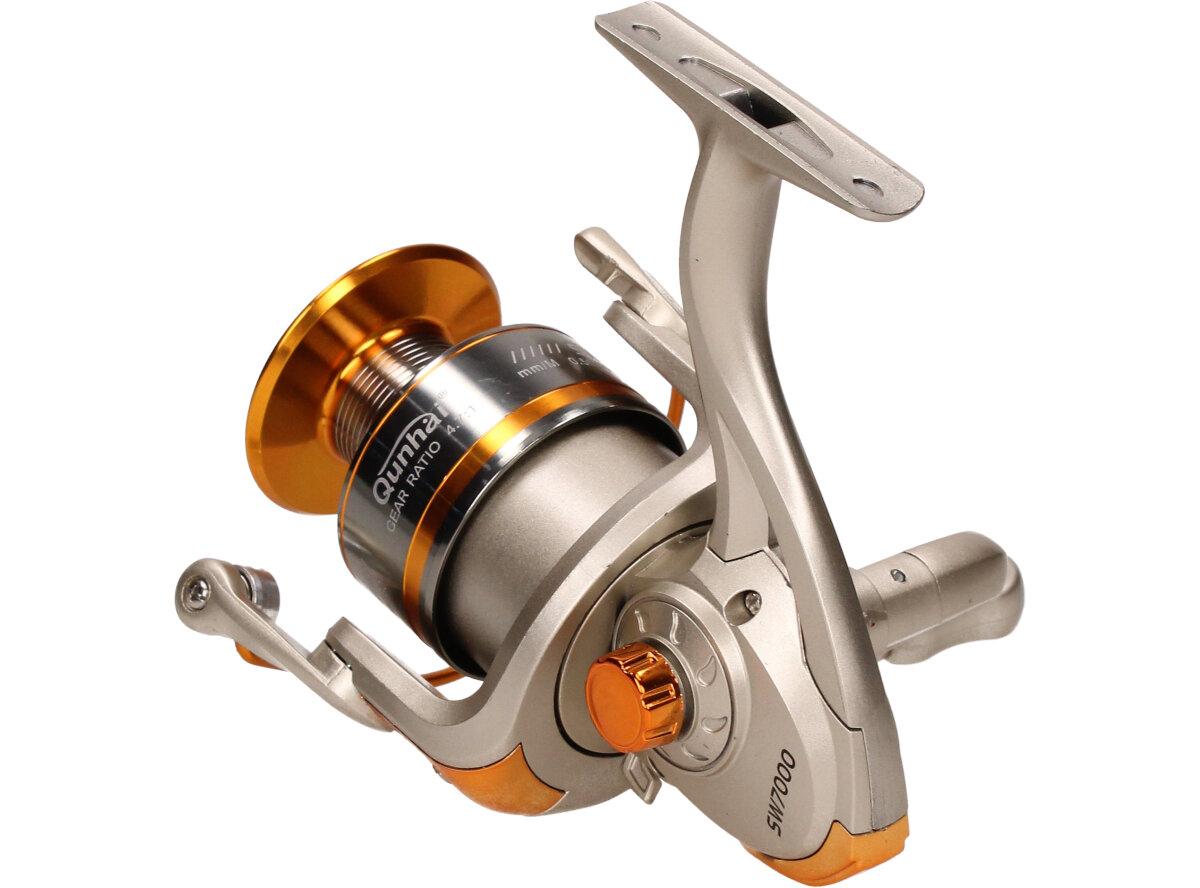 Rybářský naviják Qunhai SW7000 Je nedílnou součástí výbavy pro každý rybářský prut. Naviják s kvalitní mechanikou. Rybářský naviják obsahuje: AVS Anti vibrační systém, Zjednodušenou a praktickou manipulaci, vynikající oscilační systém, mosazné ozubené kolo, převodový poměr 5:1, Vyvážené zařízení, jemnou zadní brzdu, nastavitelnou kličku. Velká výhoda nastavitelné kličky je, že si naviják může každý přizpůsobit podle sebe buď na levou stranu a nebo na pravou stranu. Tudíž naviják mohou obsluhovat praváci i leváci.