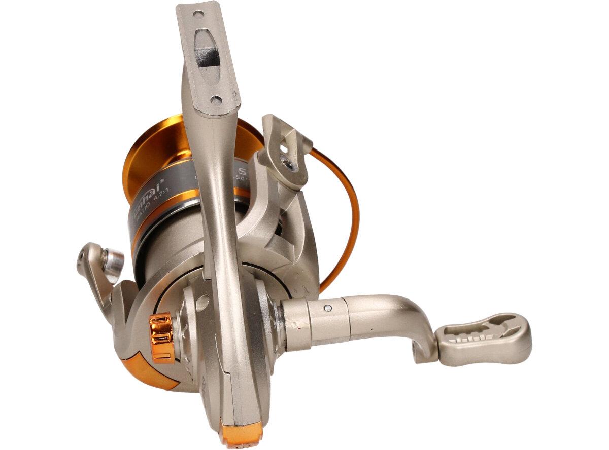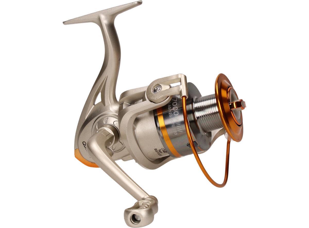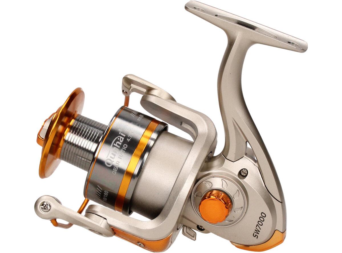 Rybářský naviják Qunhai SW7000 Je nedílnou součástí výbavy pro každý rybářský prut. Naviják s kvalitní mechanikou. Rybářský naviják obsahuje: AVS Anti vibrační systém, Zjednodušenou a praktickou manipulaci, vynikající oscilační systém, mosazné ozubené kolo, převodový poměr 5:1, Vyvážené zařízení, jemnou zadní brzdu, nastavitelnou kličku. Velká výhoda nastavitelné kličky je, že si naviják může každý přizpůsobit podle sebe buď na levou stranu a nebo na pravou stranu. Tudíž naviják mohou obsluhovat praváci i leváci.