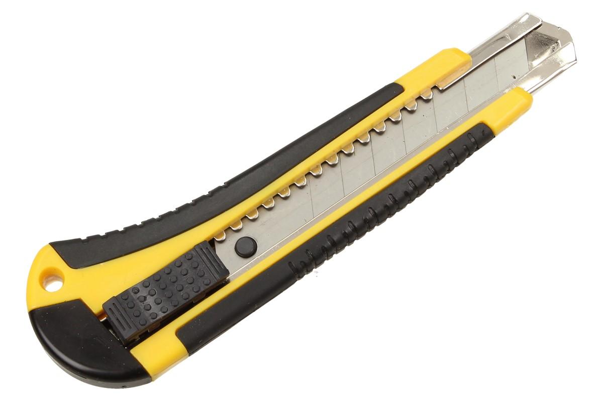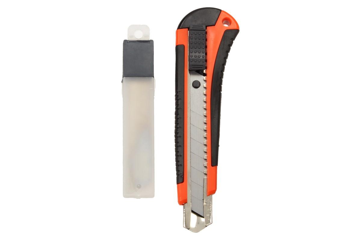 Odlamovací nůž s náplněmi Set 2 kusy je pevný, kvalitní nůž se zacvakávací pojistkou proti sklouznutí nože. Nůž je skvělá pomůcka na řezání koberců, kartonů, nebo různých drátků. Vhodné do domácnosti i do dílny. Dodáváno v oranžové nebo ve žluté barvě.