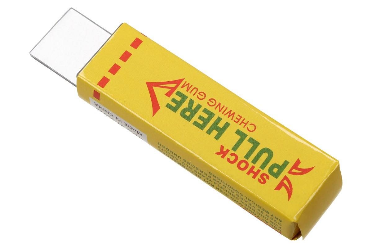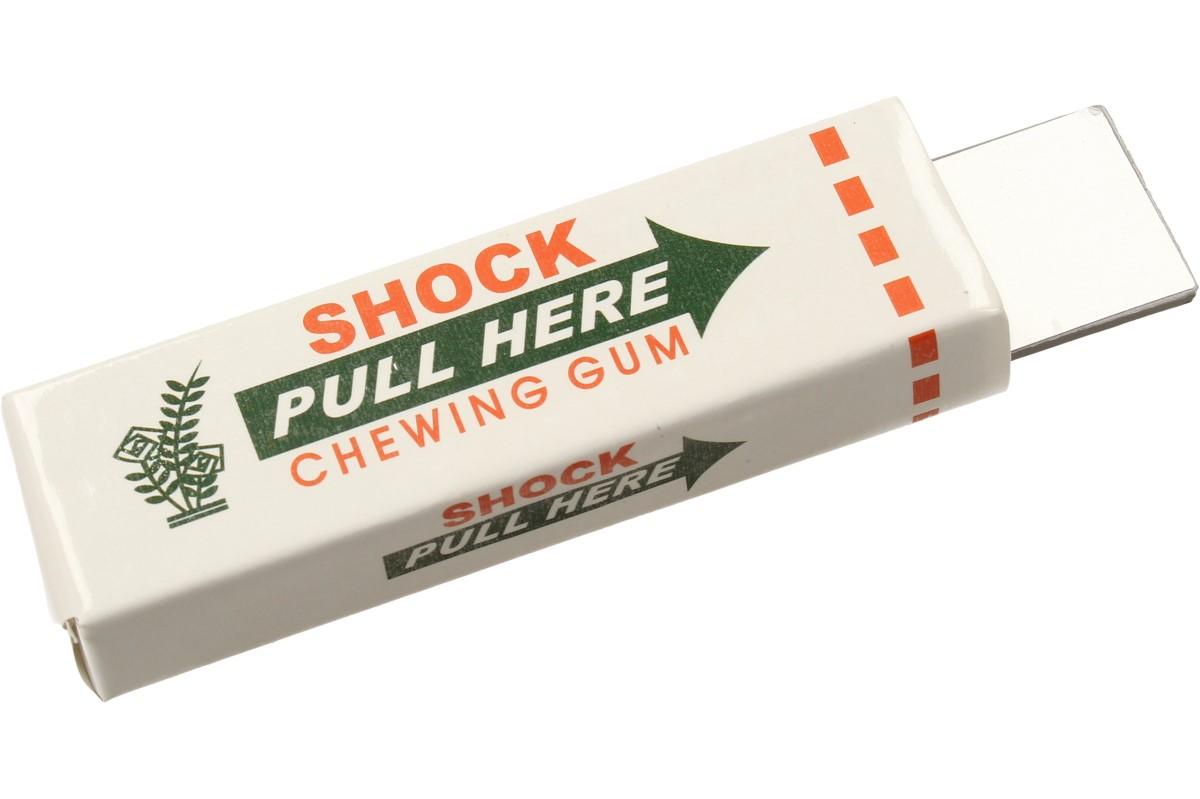Crazy žvýkačky SHOCK s elektrickým proudem vypadají na první pohled jako obyčejné sladké žvýkačky z obchodu. Vystřelte si ze svých kamarádů a pobavte se, jak vám skočí na vtípek s elektrickými, probíjecími žvýkačkami. Žvýkačka může posloužit také i jako na obranu pro zastrašení či zaskočení útočníka. Žvýkačka dává rychlý a neškodný úder elektrickým proudem. Napájení: baterie ( je součástí balení ). Vytáhněte si jednu žvýkačku a dojde k otřesům. Nedoporučuje se pro děti mladší 14 let, starší 50 let a kardiopat.