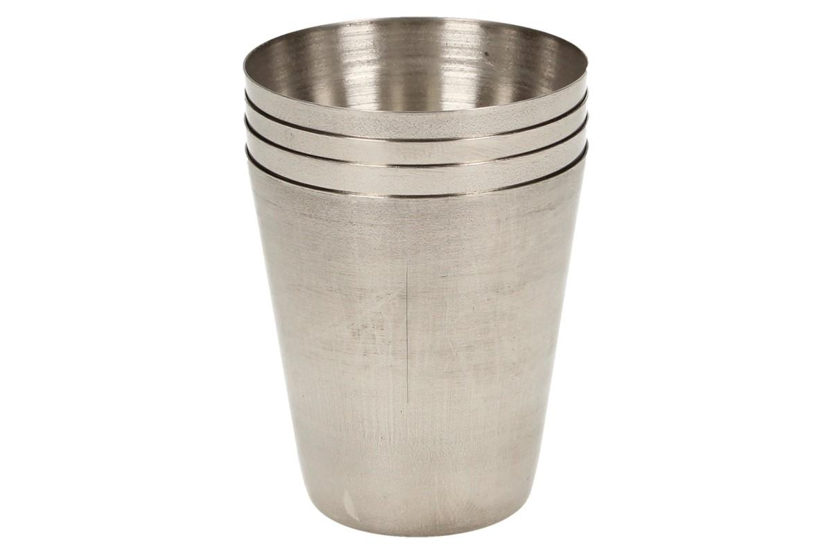 Mini kovové nerez panáky na alkohol 4 x 3,5 cm 4 kusy s pouzdrem jsou díky skladovatelnosti velmi praktické na čundry, výlety, dovolenou i na párty. Panáky jsou uchované v pevném, oválném pouzdře pro lepší nošení např. v batohu nebo kabelce. Vhodné i jako dárek pro houbaře, zahrádkáře nebo pro kamarády, co milují grilování a posezení s přáteli.