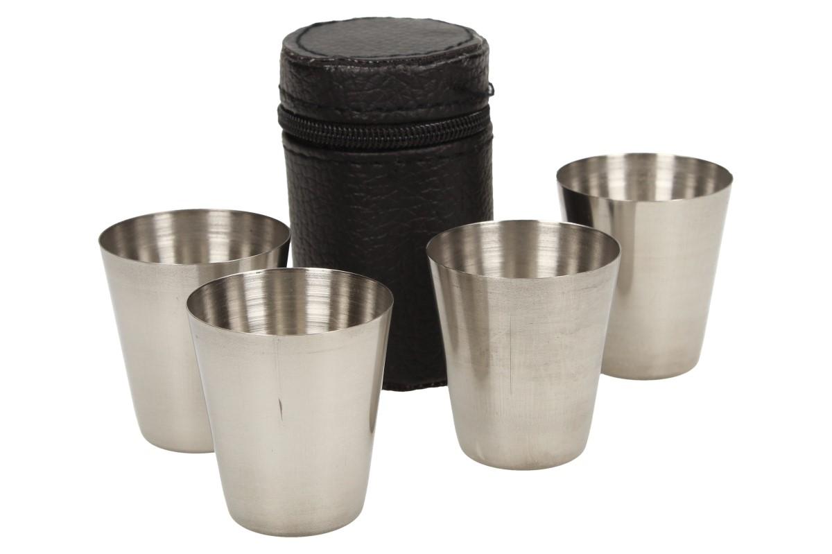 Malé kovové nerez panáky na alkohol 6x5 cm 4 kusy v pouzdře jsou díky svojí vari…
