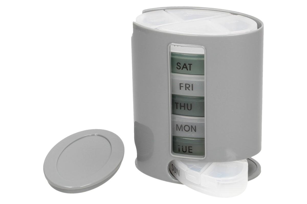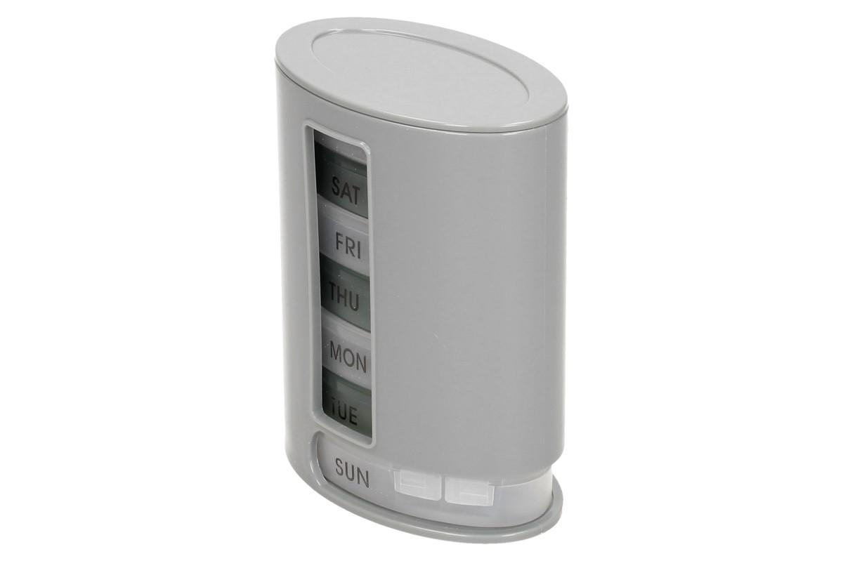 Patrový dávkovač léků se zásuvnými políčky pro každý den v týdnu, přehledně popsaný pro snadnou orientaci. Denní dávkovač je rozdělený na 4 části: Ráno-Poledne-Večer-Noc a lze jej použít i samostatně. Dávkovač slouží k přehlednému uspořádání léků či potravinových doplňků doma i na cestách.