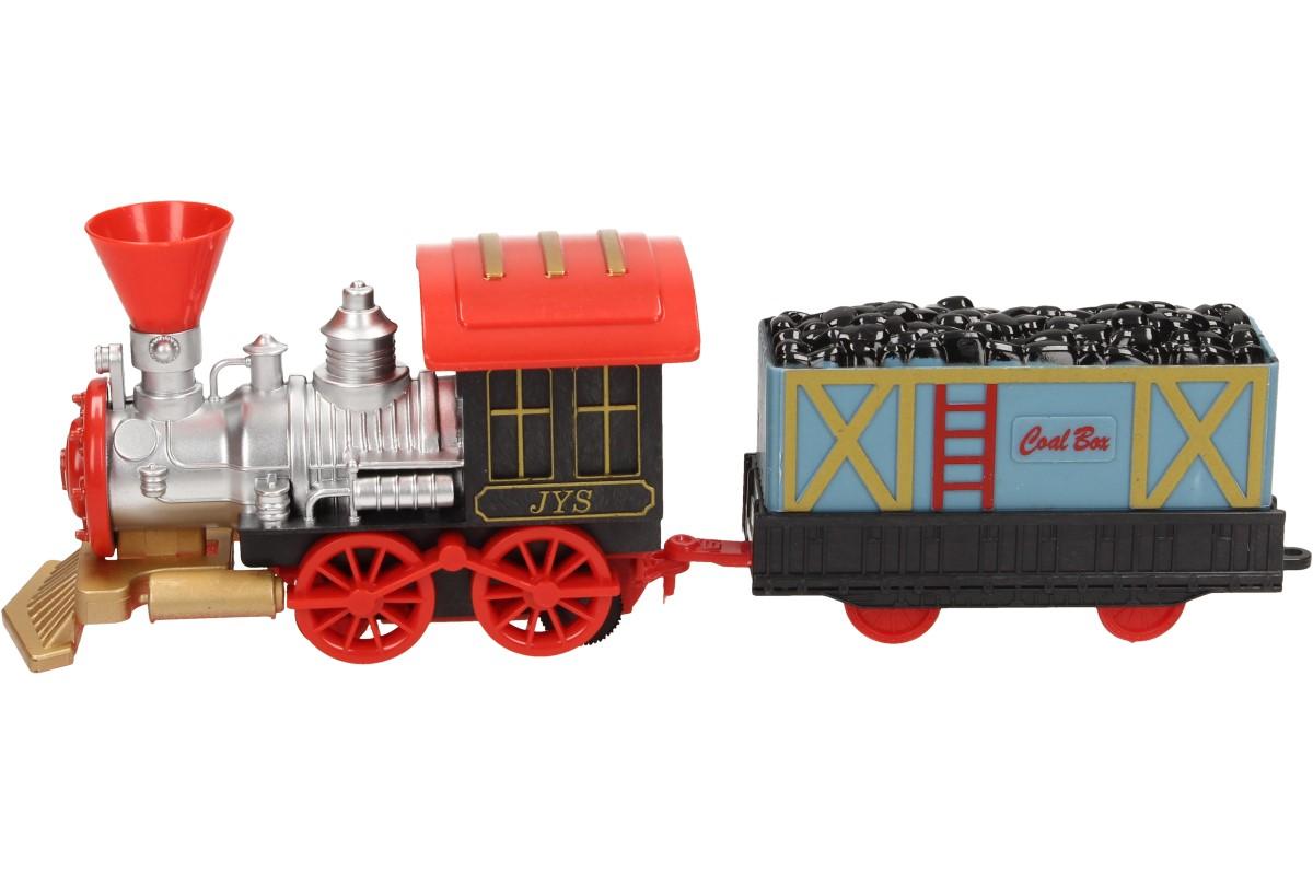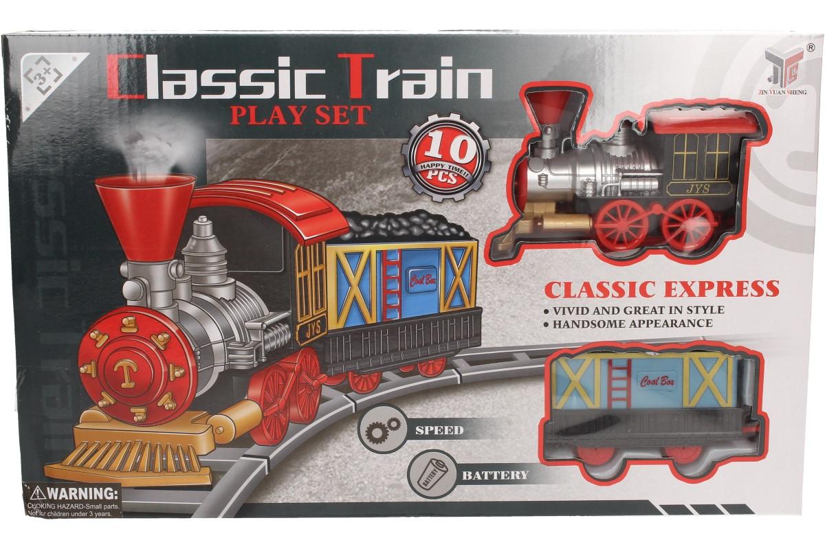 Vlaková souprava na baterie Classic Train, která se skládá z modelu parní mašinky, jedním nákladním vagónkem a kulatého kolejiště. Lokomotiva měří 13 cm a stejně jako ostatní části je vyrobená z kvalitního plastového materiálu. Tento model jezdící vlakové soupravy na dlouhé hodiny zabaví všechny malé železničáře.