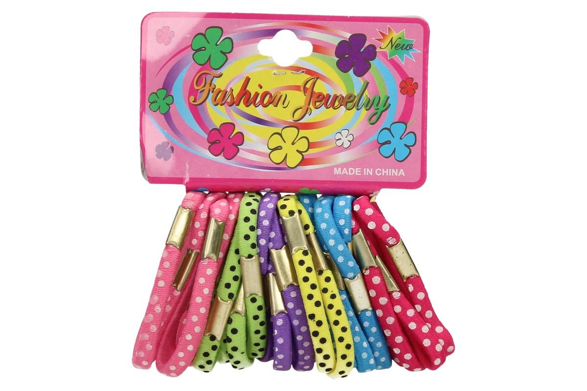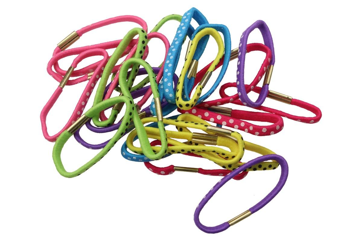 Pevné barevné gumičky do vlasů Sada 24 kusů jsou vyrobeny z jemného materiálu, který netahá a nepoškozuje vlasy. Ideální využití gumiček je pro jakýkoliv účesy i typy vlasů, takže pohodlně vytvoříte pevný účes, který se jentak nerozpadne. Gumička o průměru 6 cm je velice pružná a přizpůsobivá. V balení je 6 druhů barev: tmavě růžová, světle růžová, zelená, modrá, žlutá a fialová.