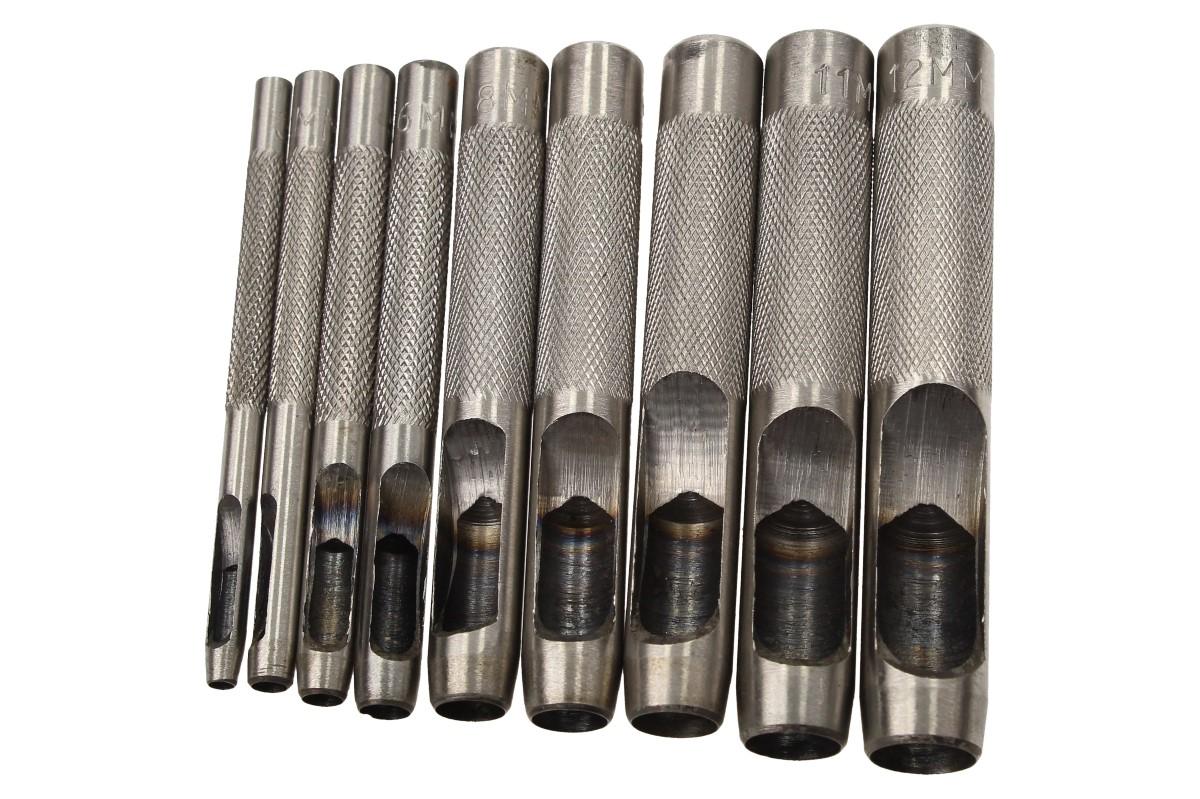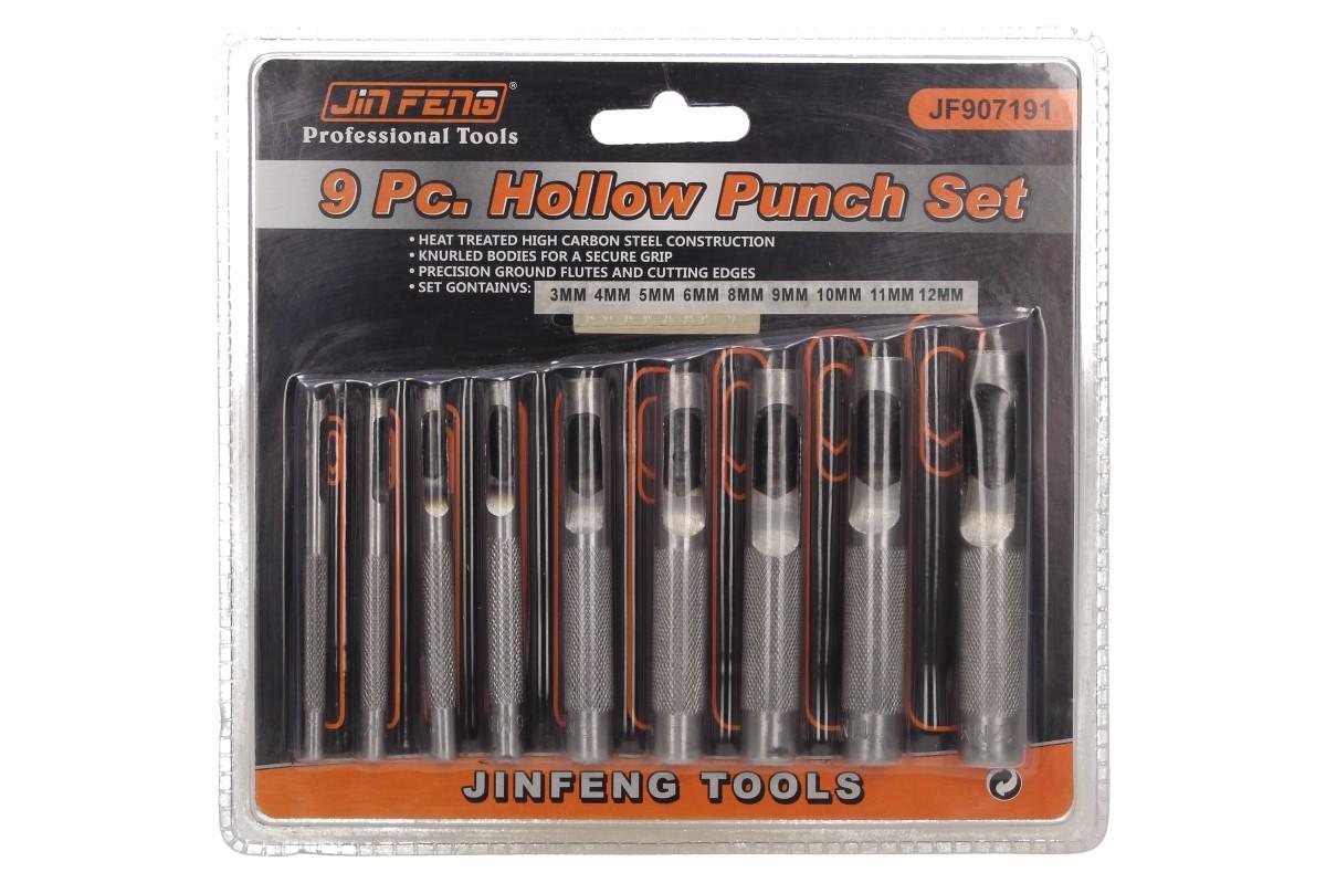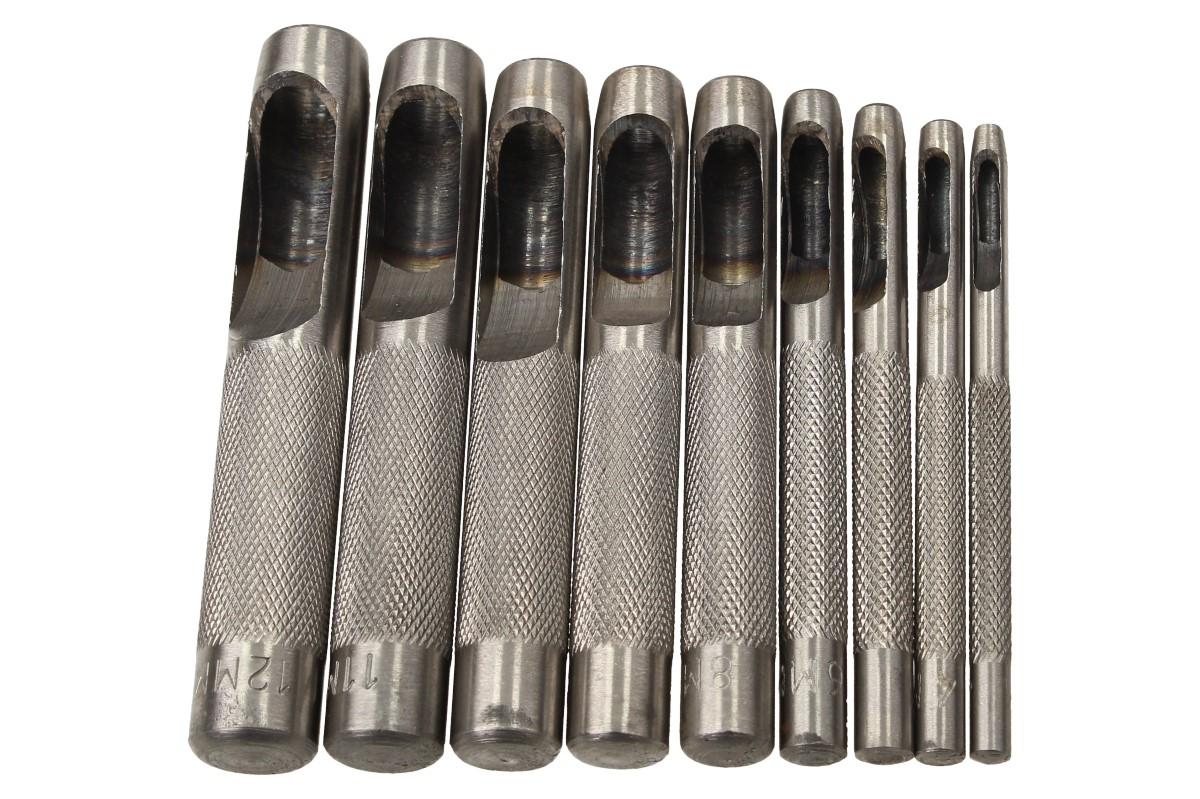 Tyčové výsečníky sada 9ks pro ražení otvorů a výroby těsnění. Používá se pro vyrážení otvorů do kůže, měkkého plastu, gumy nebo i kovu. Dále se využívá i pro výrobu instalatérského těsnění. Určena pro údery kladivem proti měkké podložce, například silonové, nebo dřevěné desce.