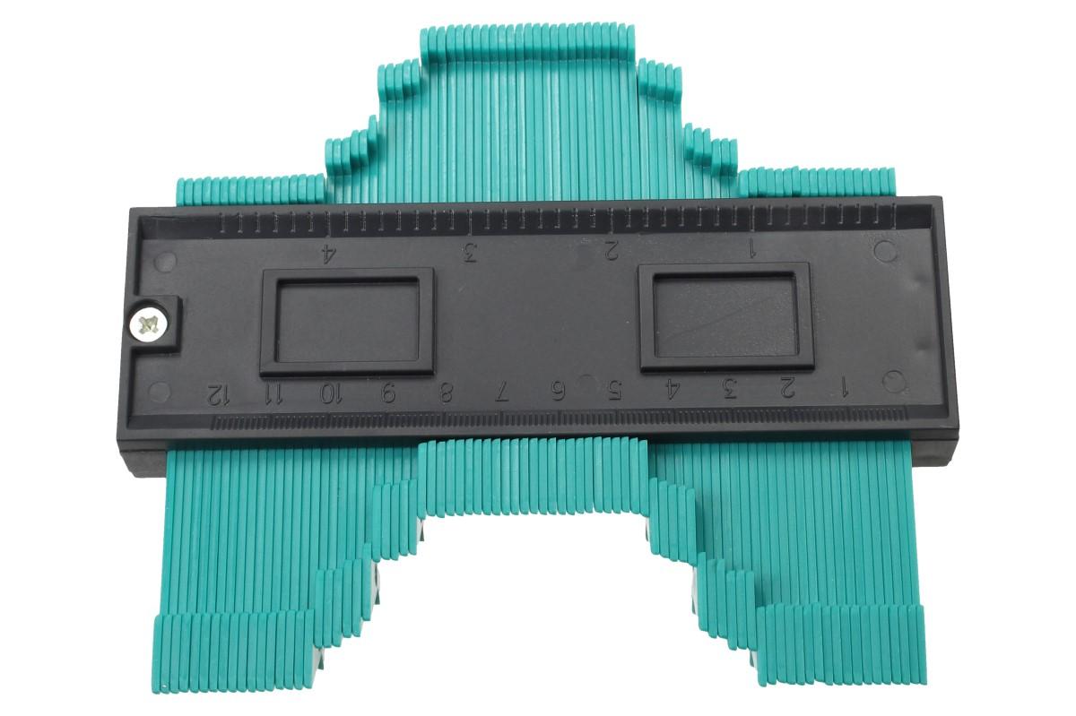 3D šablona na obtisk tvarů umožňuje jednoduché přenášení tvarů předmětu na zpracovávaný materiál. Umožňuje zkopírovat a překreslit tvar nepravidelných předmětů, které jsou obtížně označitelné, aby se vytvořila okamžitá šablona pro označování přesných řezů, protože se dokonale přizpůsobuje tvaru. Použití je velmi snadné. Jednoduše zatlačte zuby proti trubce nebo předmětu, který si zvolíte. Když šablonu následně odtáhnete, uvidíte že zuby v profilu zachovají tvar předmětu. Dále jej umístěte na dlaždici, dřevo nebo kov, který potřebujete řezat a při řezání budete mít přesný tvar. Na rozdíl od kovových obrysových měřidel je tato odolná plastová šablona vyrobena z vysoce kvalitního ABS plastu a je odolná vůči korozi.
