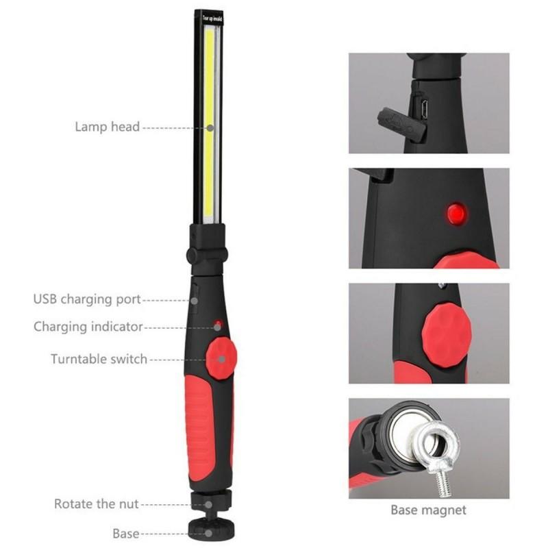 Přenosné pracovní světlo s magnetem BL-W55 vybavené nabíjecím kabelem USB, díky kterému můžete světlo kdykoliv nabít. Světlo je dále vybaveno speciální magnetovou základnou a výkonným magnetm, kteý je dostatečně silný, aby se připevnil na všechny kovové povrchy. Je to velmi užitěčné, když potřebujete mít obě ruce volné. Lampa poskytuje 100-700 lumenů jasu, lze nastavit podle potřeby od nízkého jasu po vysoký jas pomocí kulatého tlačítka. Otočná základna o 360° vám dává větší možnost při výběru vhodného úhlu osvětlení. Pracovní lampa je vhodná pro vnitřní i venkovní aktivity, např. použití v domácnosti, opravy automobilů, venkovní táboření. Tuto LED pracovní lampu lze použít také pro procházky se psem, turistiku, lov atd. Přenosný a dobíjecí design je vhodný nástroj pro osvětlení, který splní vaše různé požadavky.