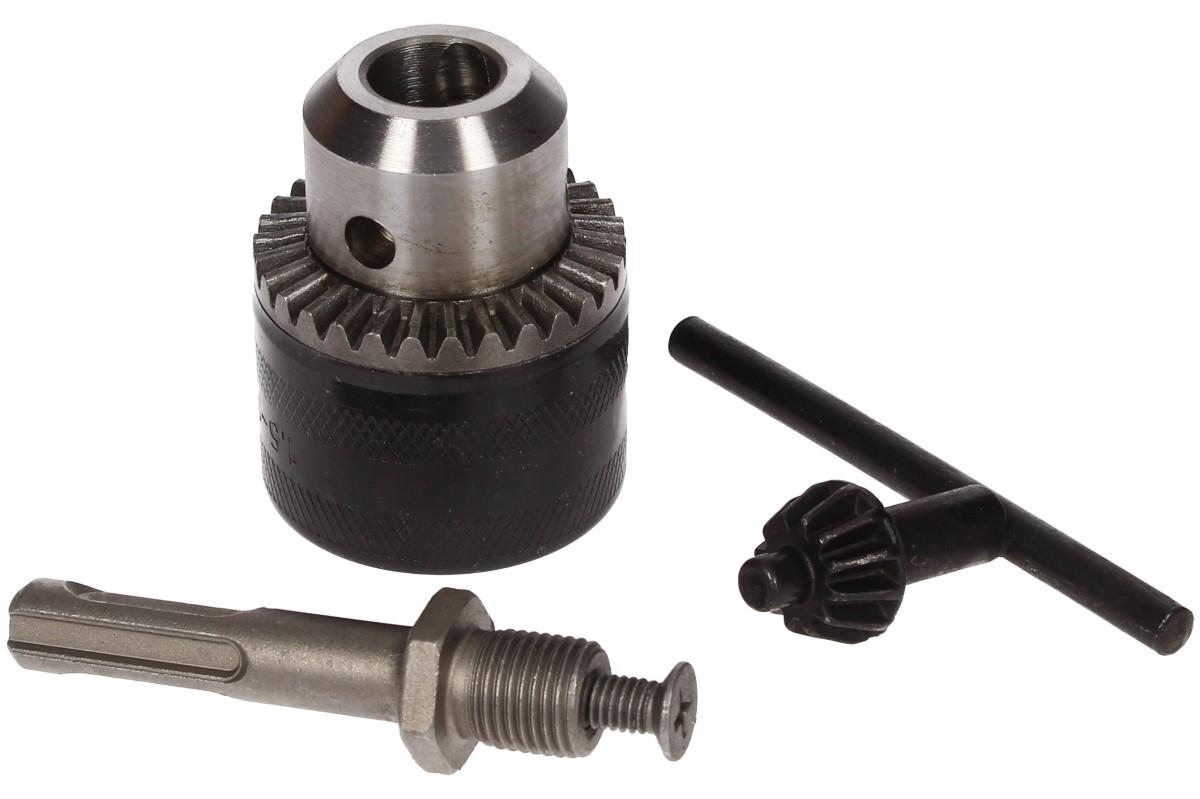Sada sklíčidla s ozubeným věncem R 13 mm s adaptérem SDS- Plus je vybavena velice silnými upínacími čelistmi, které zaručují dobré držení vrtáku. Součástí balení je adaptér, který je určen pro použití ve vrtacím kladivu SDS- Plus. Vhodné pro uchycení širokého spektra vrtáků.