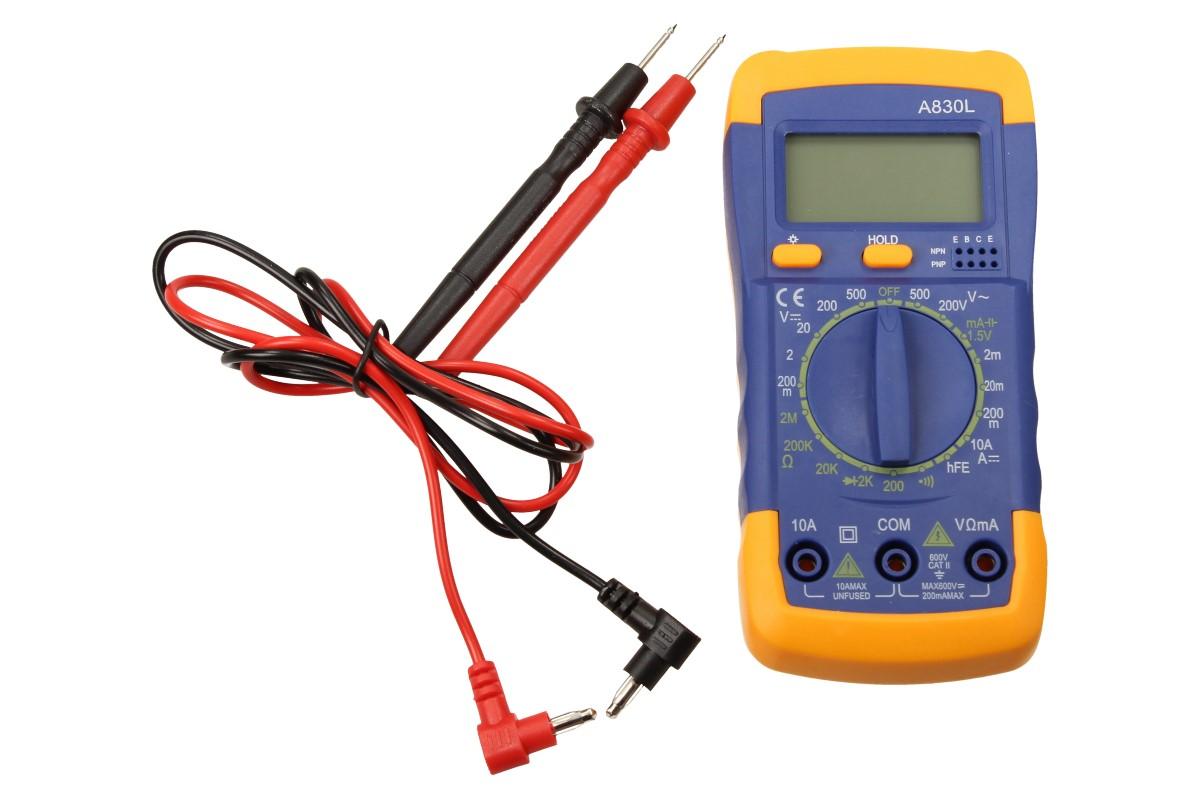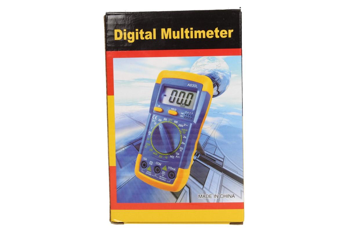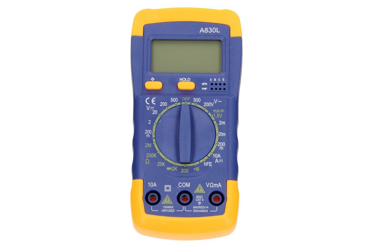 Digitální multimetr A830L vám umožní lehce změřit kapacitanci, napětí, proud, odpor a teplotu. Pomocí vodiče na přední straně zařízení, můžete vybrat manuálně nastavit požadovaný rozsah. Multimetr nám nabízí i funkci přidržení, která zajistí velmi uživatelsky přívětivé ovládání. Robustní plastový kryt s dvojitým tvarováním poskytuje dokonalou ochranu před drsným prostředím. Součástí dodávky multimetru jsou elektrické testovací vodiče, teplotní čidlo typu K, 9V baterie a uživatelská příručka.