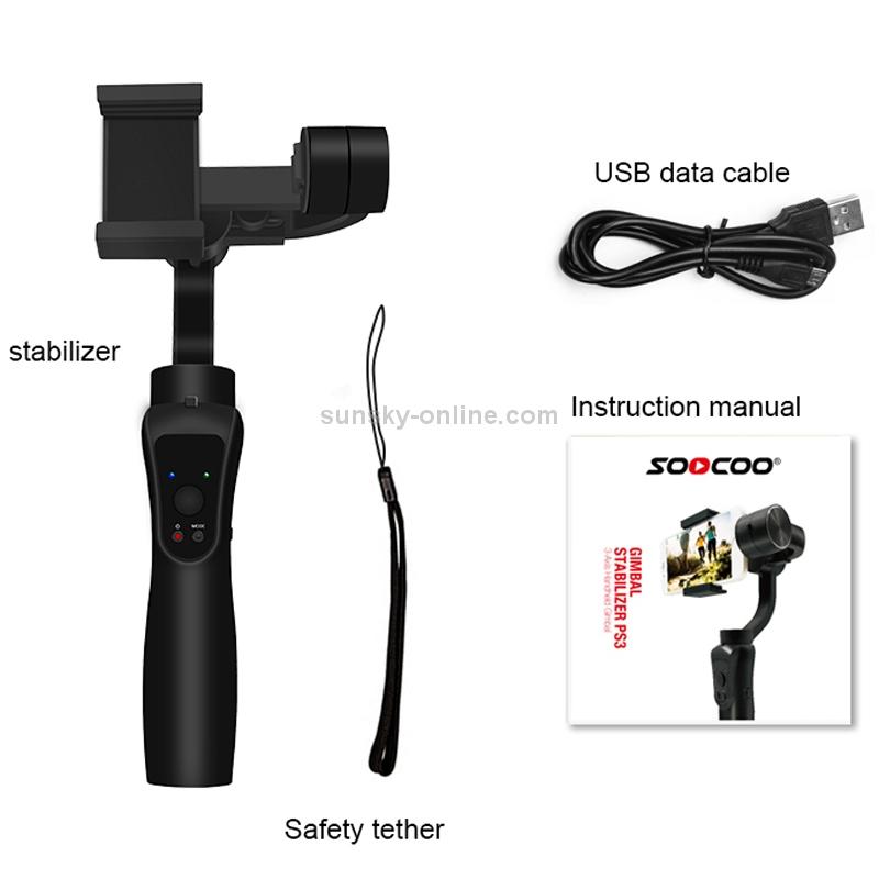 Profesionální, univerzální stabilizátor SooCoo Gimbal PS3, je velice kvalitní stabilizátor s univerzálním úchopem pro mobilní telefon(android i ios),ale i pro akční kamery. Přizpůsobí se vám! Vysková úroveň stabilizace je zajištěna díky perfektní tříosé konstrukci. Stabilizátor lze ovladát jednoduše a pohodlnně díky ovládacímu kolečku. Zkušená společnost SooCoo vyrabí především velmi kvalitní stabilizátory, SooCoo Gimbal PS3 není výjimkou. Skvěle vymyšlená konstrukce, kvalitní materiál, jednoduché použití, spojení přes bluetooth s vaším zařízením. To vše vám půže SooCoo PS3 nabídnout, jako bonus za bezkonkurenční cenu. V těle stabilizátoru jsou ovládací prvky(tlačítka), to znamená že pohodlnně stisknete spoušť přímo ze stabilizátoru. SooCoo Gimbal PS3 nabízí také moderní funkce jako timelapse, slow motion, nebo object tracking- samostatně sleduje zvolený objekt, včetně lidské tváře. Baterie má obrovskou výdrž, až 12 hodin! Součástí balení je Samotný Gimbal PS3, návod k použití, USB kabel a bezpečnostní šňůrka.