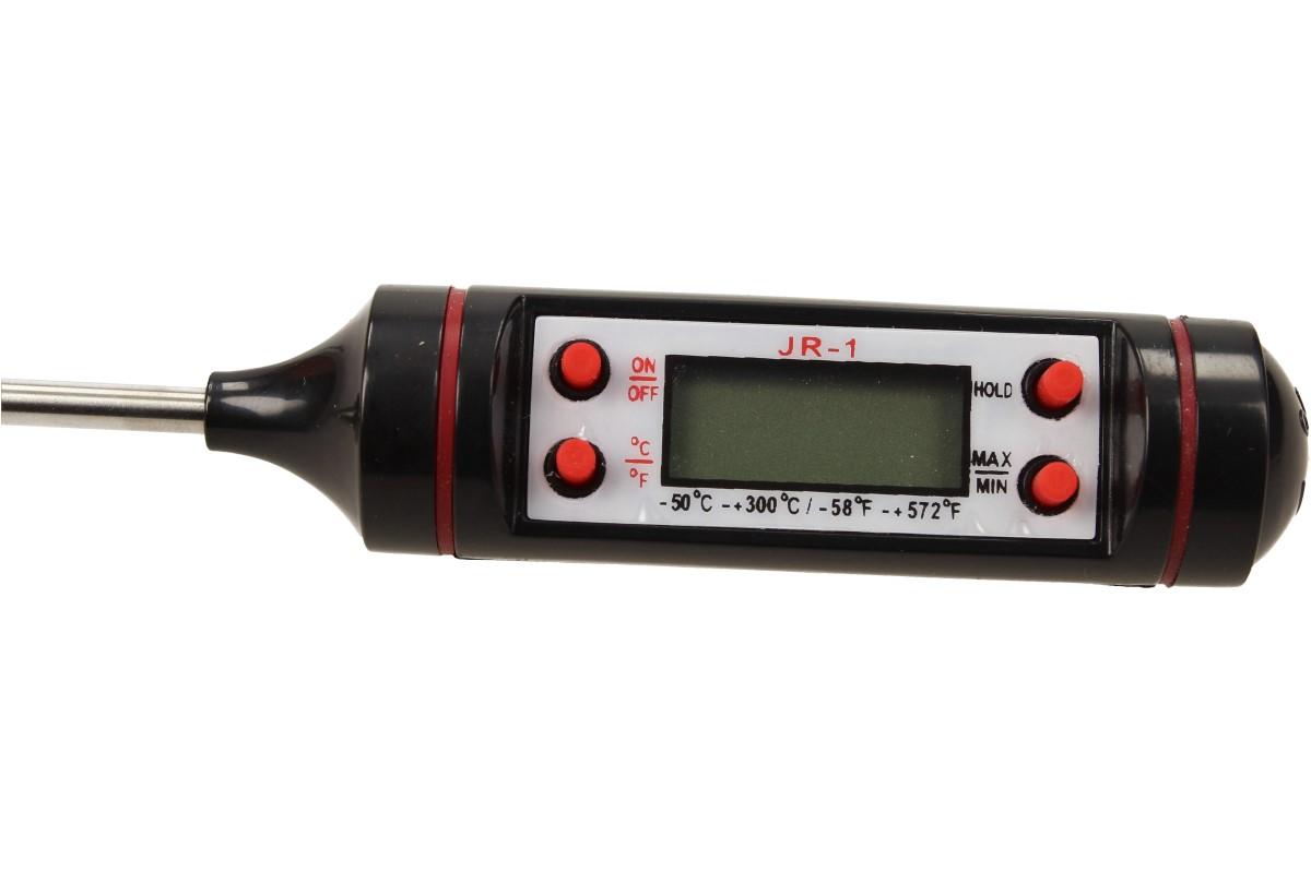 Digitální kuchyňský teploměr se stane nepostradatelným pomocníkem každého kuchaře a kuchařky. Grilování, pečení, vaření, dušení s tímto šikovným jehlicovým teploměrem zvládnete velmi snadno. Dosažení teploty při pečení masa je důležité nejenom kvůli chuti, ale i z hygienických a zdravotních důvodů, zaručuje, že došlo ke zničení všech škodlivých bakterií. Teploměr má přehledný LCD displej s velkými číslicemi a ve chvilce změří teplotu uvnitř pokrmu.