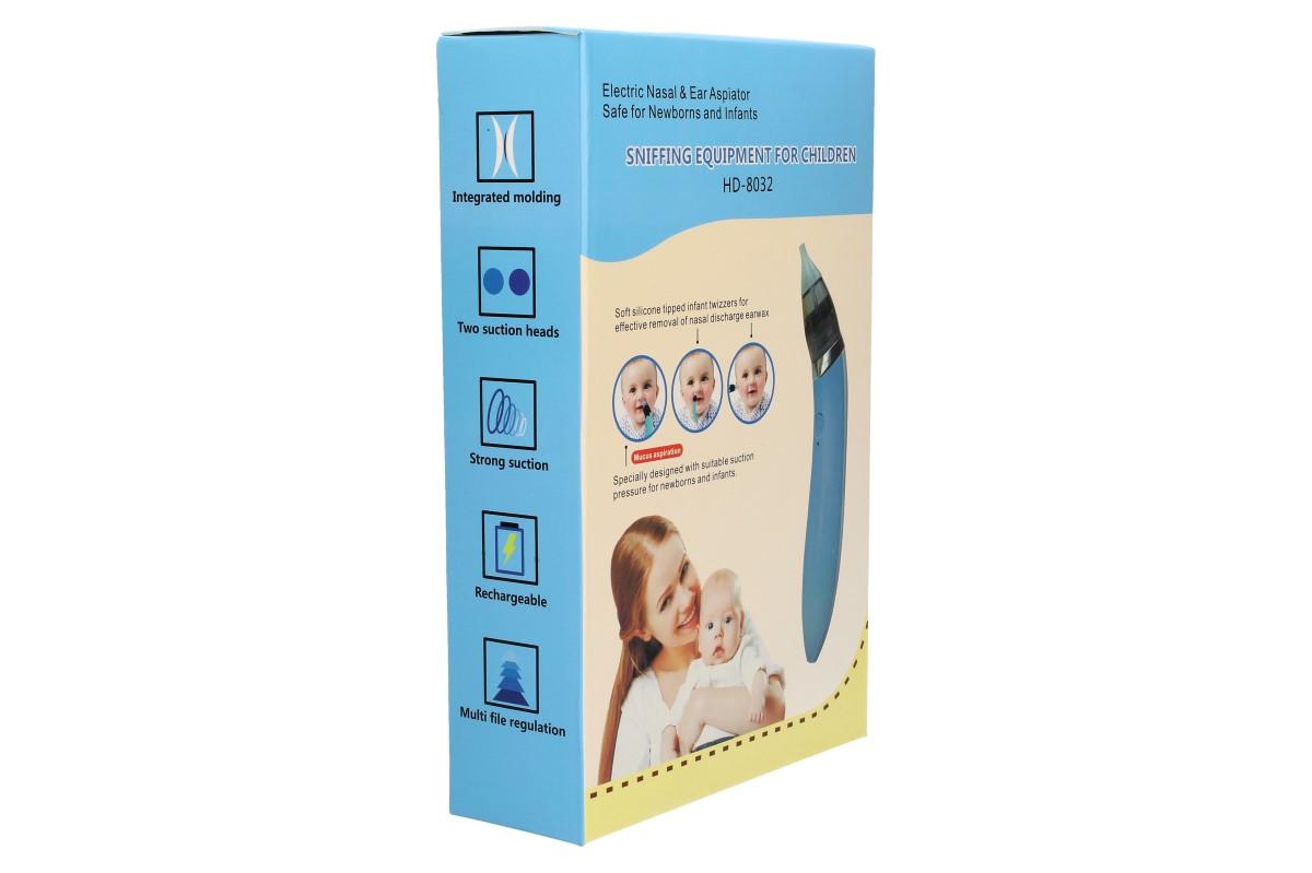 Dětskou nosní a ušní odsávačku HD-8032 ovládáte pouze jedním tlašítkem, kterým volíte pět rychlostních stupňů, což je snadné a pohodlné. Sací hlava a hubice jsou vyrobeny z potravinářského silikonu, který je měkký a šetrný k pokožce. Má odnímatelný design, díky kterému bude čištění hračka a ergonomický tvar, aby se pohodlně držela. Dobíjení provádíte pomocí USB kabel, který je součástí balení. Antirefluxní konstrukce bránící tomu, aby se hlen dostal zpět do nosu. Před použitím namočte přísavku na 10 minut do teplé slané vody, aby došlo k dezinfekci.
