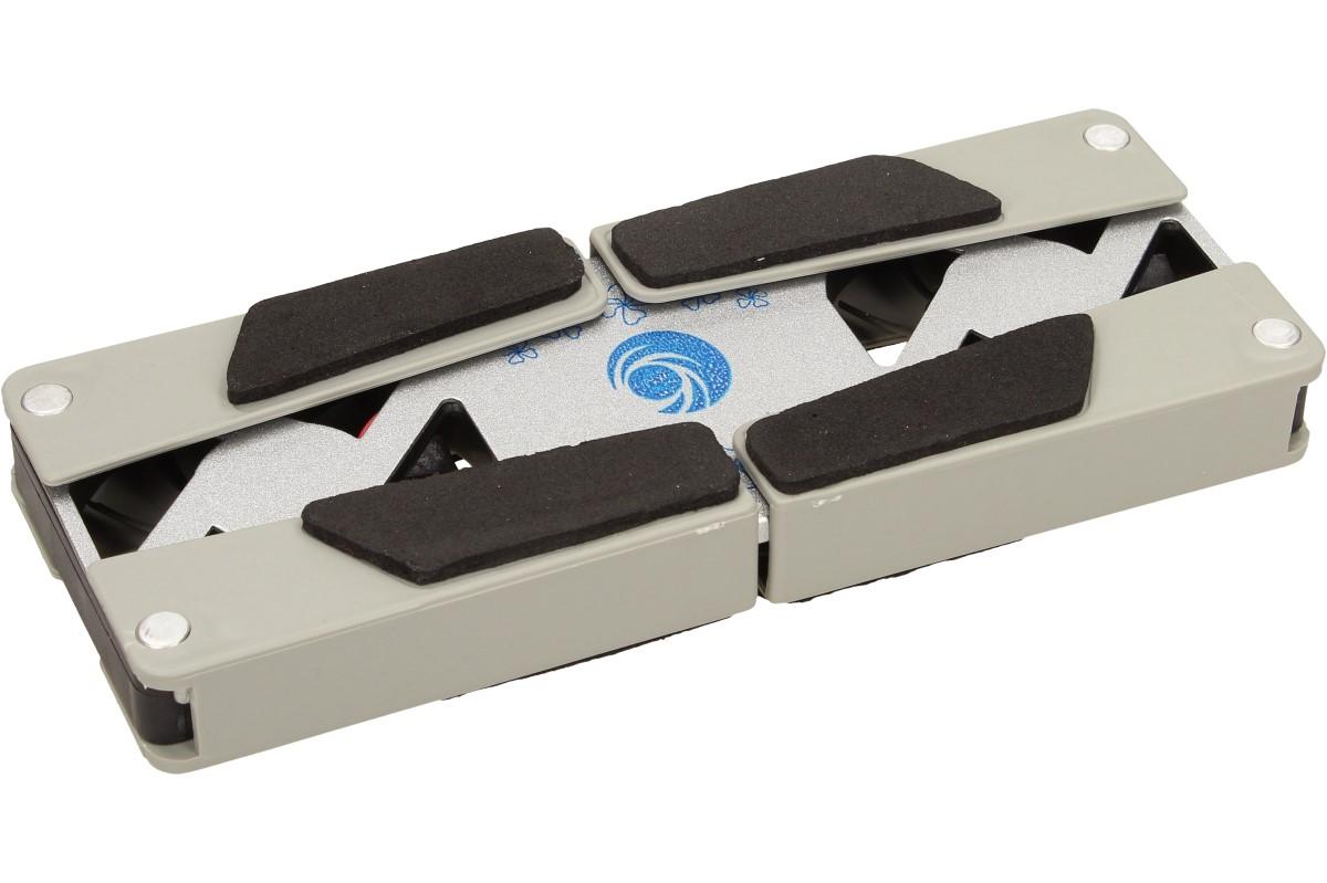 Chladící podložka pod notebook 818 efektivně zajistí snížení teploty jednotlivých součástek a tím prodlouží jeho životnost. Takovou podložku by si měl pořídit každý, komu se notebook přehřívá, používá náročné programy nebo hraje hry. Je opatřena velkými, výkonnými a mimořádně tichými 2 zabudovanými ventilátory, které pomáhají odvádět tepelný vzduch z pod notebooku a nahrazují ho studeným. S mohutnou konstrukcí unese chladicí podložka jakoukoli váhu notebooku s vyvážením, aniž by to ovlivnilo jeho používání. Zdroj napájení je přes USB, nebo zasunutí rovnou do notebooku (rozdvojený konec). Největší výhodou této podložky je její skladnost, díky které ji můžete mít neustále u sebe nebo v tašce společne s počítačem.