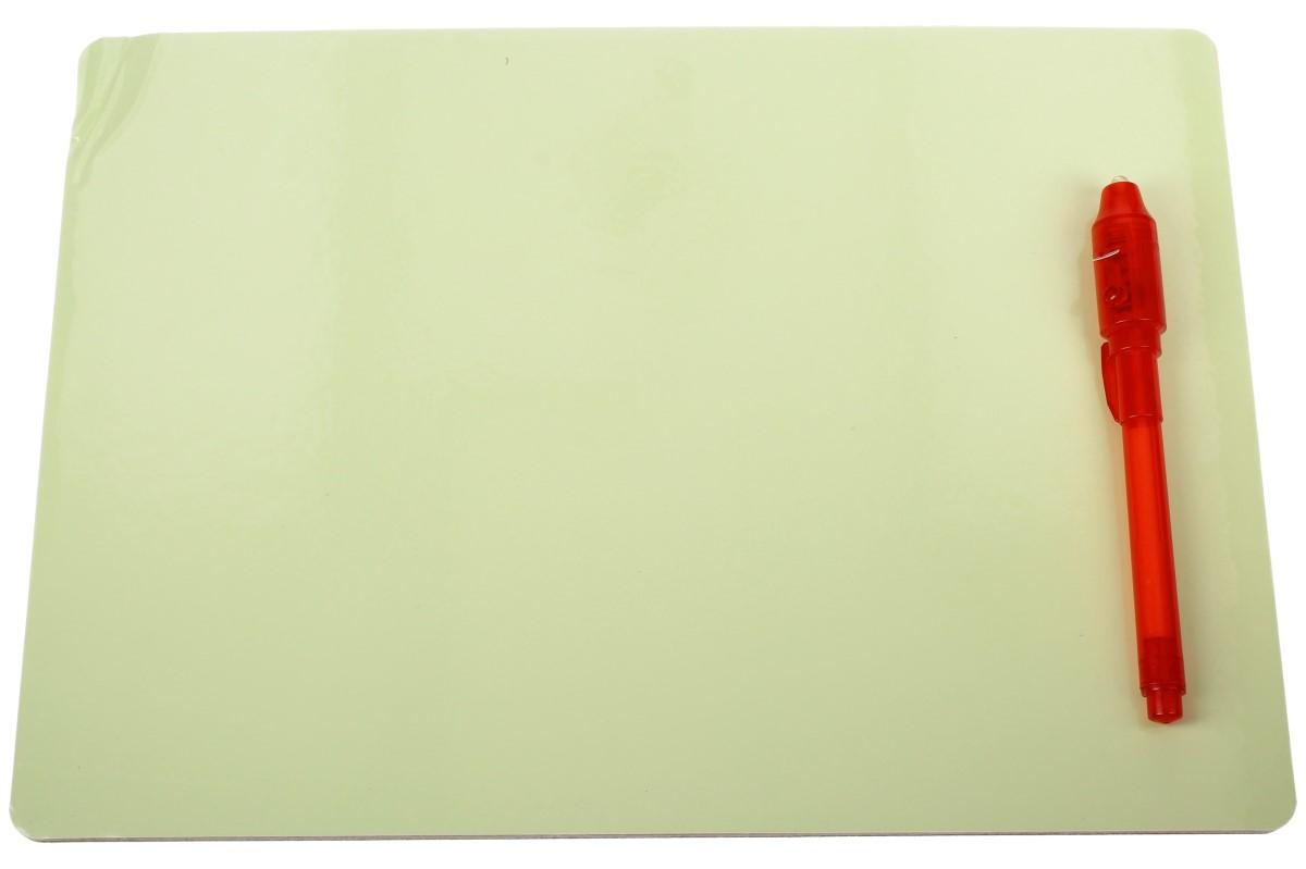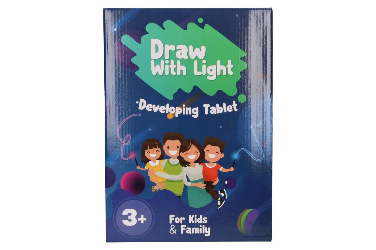 Rozvíjejte tvůrčí potenciál vašich dětí a pořiďte jim tuto tabulku Draw with light. Kreslete perem nebo samotným světlem a sledujte tu radost v dětských očích. Jas čar závisí na tom, jakou intenzitou kreslíte. Děti mohou krestlit podle vlastní fantazie nebo dle přiložených šablon s čísly a písmeny. Nakreslené obrázky světlem se nedají smazat, ale po chvíli začnou samy mizet. Smazat můžete text napsaný neviditelným perem. Pro lepší zážitek, doporučujeme malovat ve tmě.