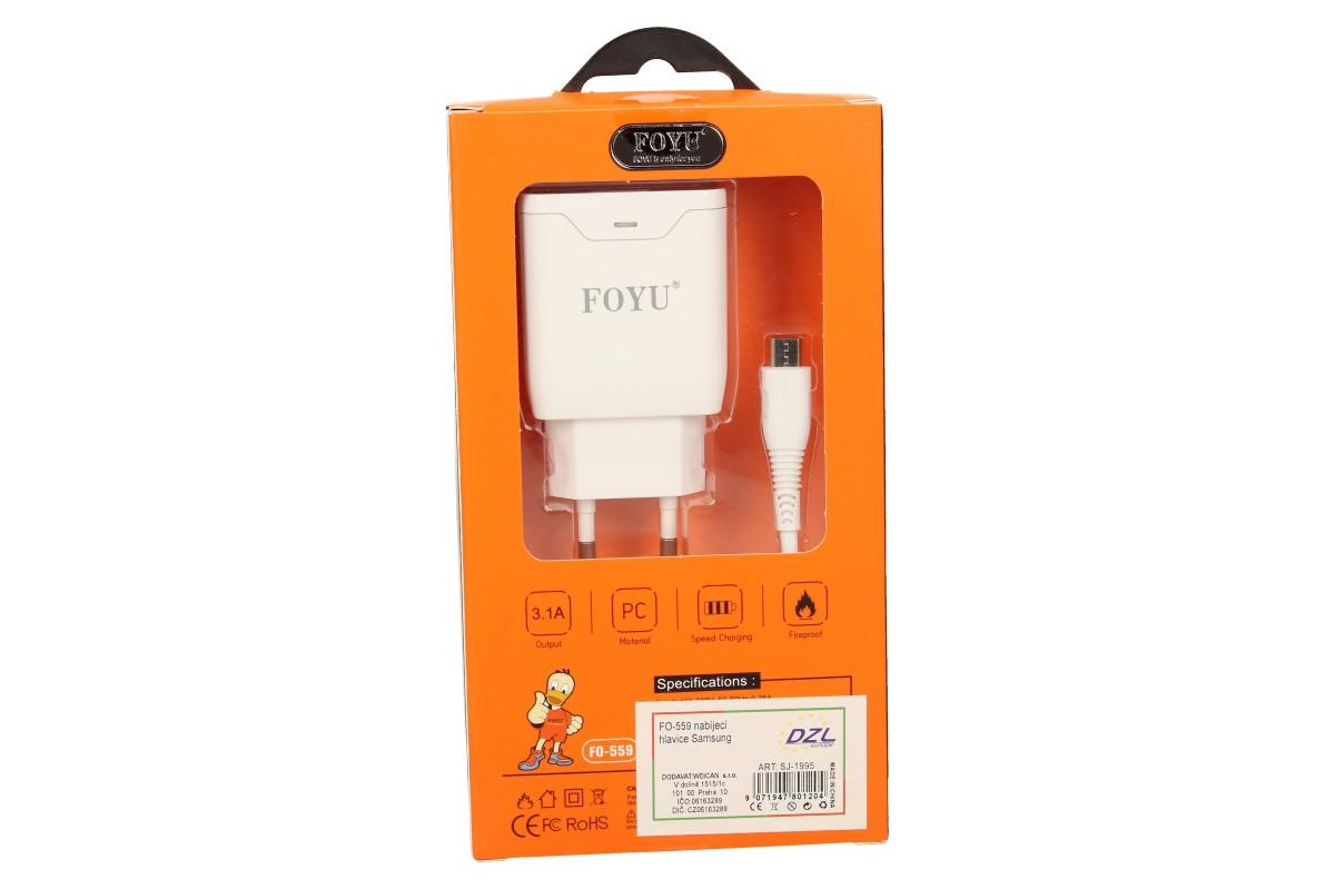 Rychlonabíječka FO-559 Micro USB se stane nezbytnou věcí každé domácnosti, kanceláře, atd.. Je vhodná pro nabíjení MP3, MP4, mobilních telefonů, bezdrátových reproduktorů, GPS, tabletů, sluchátek a mnoho dalšího. V názvu nemá Quick Charge (rychlost) jen tak pro nic za nic, požadovanou věc nabije až 3x rychleji než běžné nabíječky. To jistě využijí lidé, kteří se jen tak nezastaví a potřebují rychle nabít své zařízení. Kabel je dlouhý 100 cm, potažen speciální gumou, kterou jen tak něco nezničí a přidělaná páska na suchý zip, Vám zajistí klid od zdlouhavého rozmotávání kabelů. Neváhejte a pořiďte každému členu domácnosti svou rychlonabíječku!