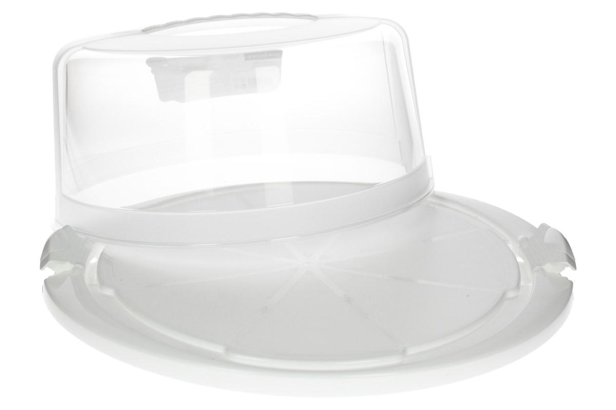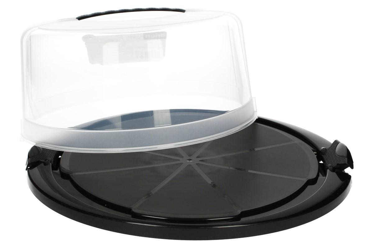 Podnos na dort s víkem je ideální pro přenášení dortů, bábovek, chlebíčků a dalšího občerstvení. Pro tento účel je vyroben z odolného plastu, který je zdravotně nezávadný a určený pro styk s potravinami. Poklop se k tácu připevňuje pomocí dvou postranních klipů (vždy si pečlivě zkontrolujte jejich upevnění). Poslouží vám nejen k bezpečnému přenášení, ale také jako ochrana před otravných hmyzem. Díky transparentnosti poklopu, máte dobrý přehled o obsahu.