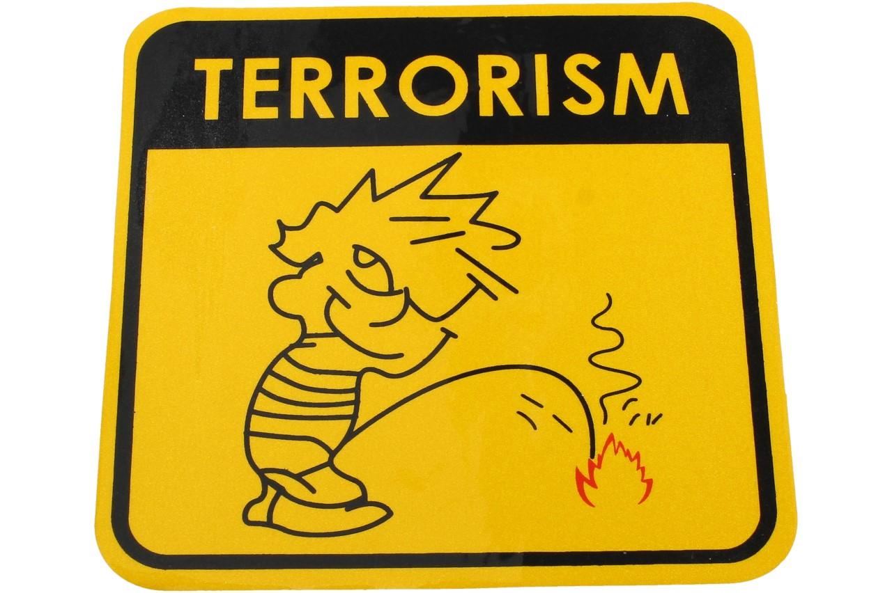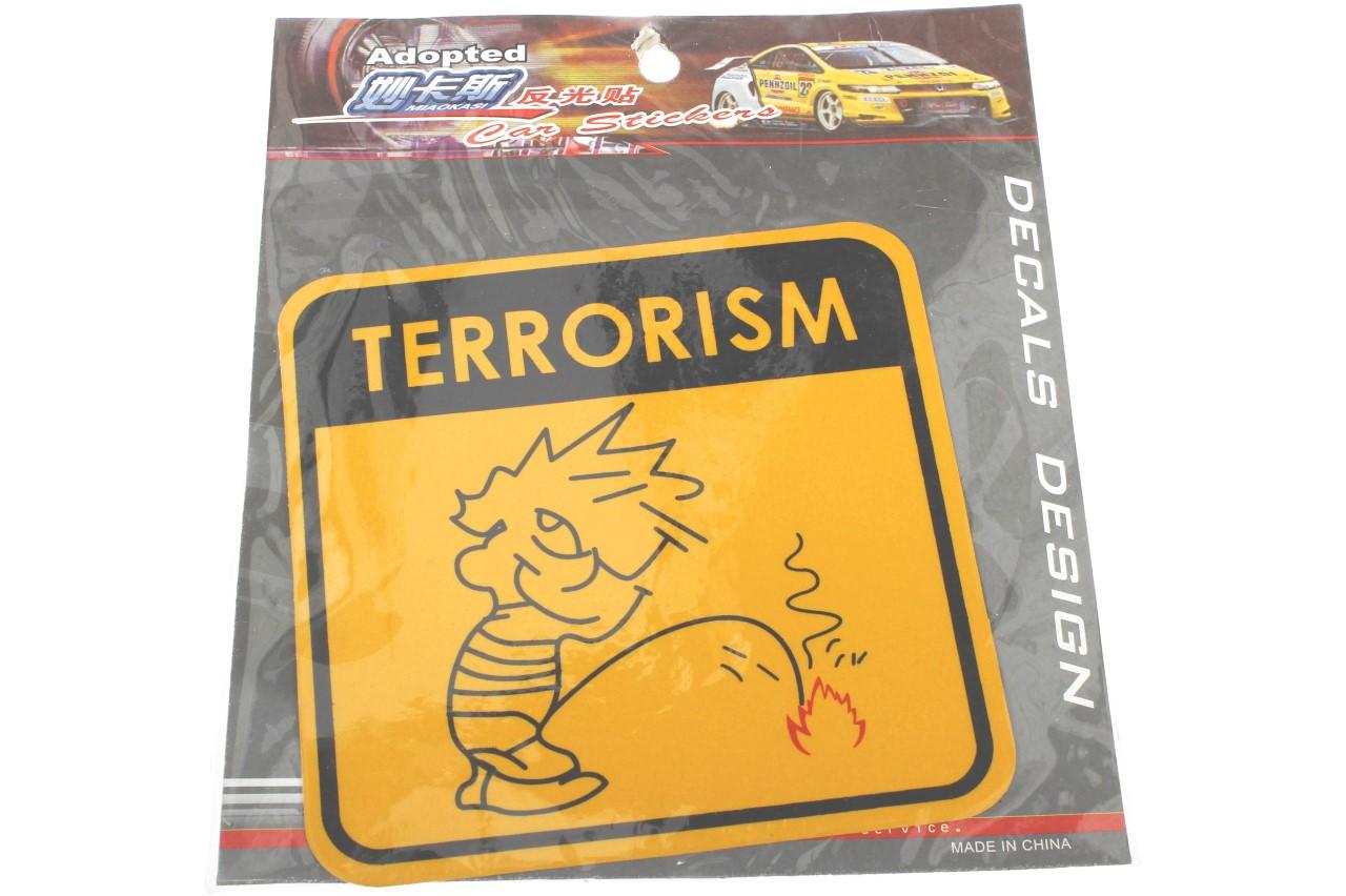 Samolepka Terrorism žlutá 12 x 12 cm zaručeně udělá radost všem tuningářům, majitelům a milovníkům aut. Kvalitní nálepka je opatřena silnou lepící plochou, která neničí povrch laku na autě. Můžete s ní zamaskovat škrábance, promáčkliny a jiné vady. Díky kvalitnímu zpracování zaručuje odolnost proti vodě, slunci a mrazu. Využít lze na jakékoliv libovolné povrchy i předměty. Originální a zajímavá samolepka má rozměry: 12 x 12 cm.