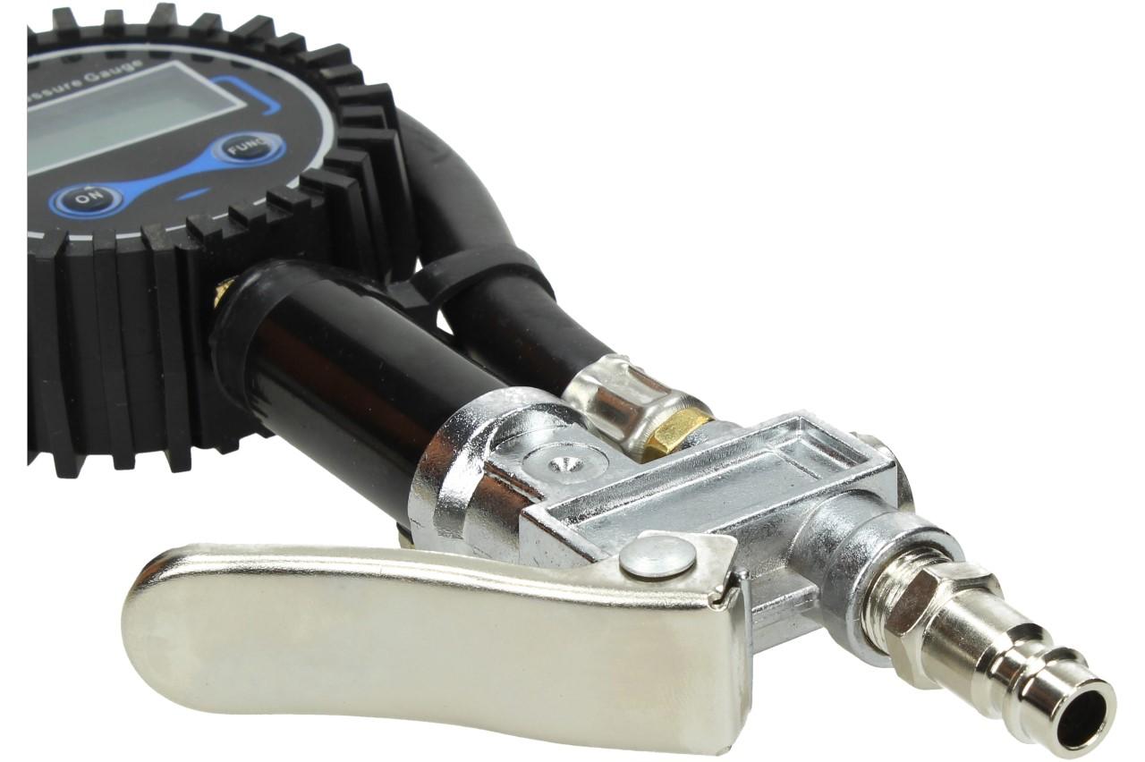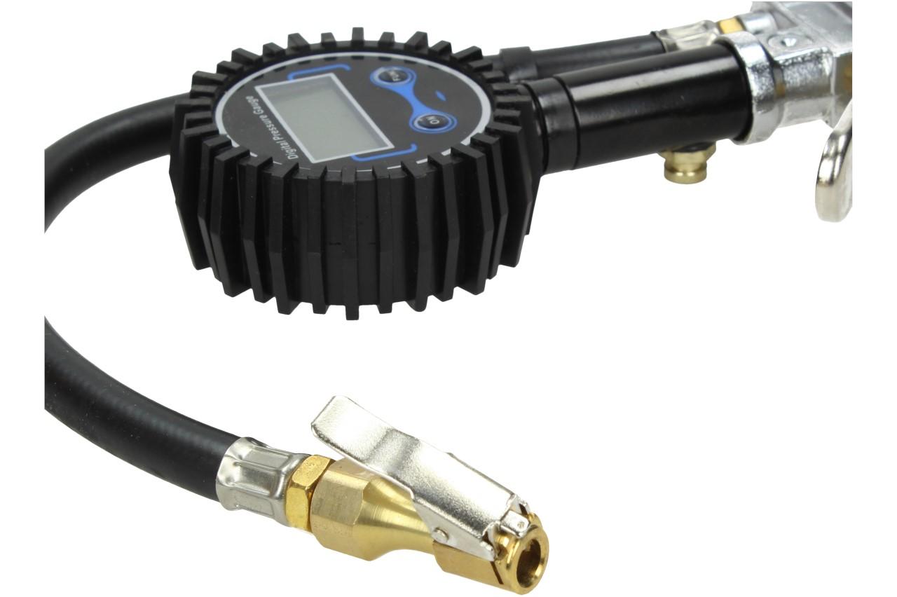 Hustící pistole je ideálním nástrojem pro huštění, dofukování a přesné měření všech druhů pneumatik, v hodnotách od 0 do 17 barů. Pokud si pořídíte vhodné adaptéry, je možné nafouknout matrace, míče, atd. Dále je hustič opatřen digitálním manometrem, který umožňuje kontrolovat tlak vzduchu v dané věci s přesností měření o 1%. Díky kvalitnímu upínání je možno pistoli připojit k jakémukoli modernímu kompresoru. Můžete také přepínat mezi 4 jednotkami měření (PSI, BAR, KPA, Kg/cm2) pomocí tlačítka On.