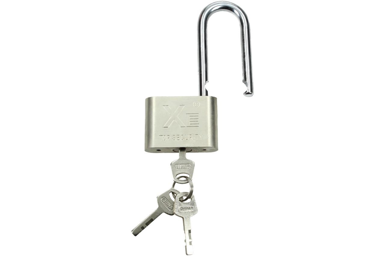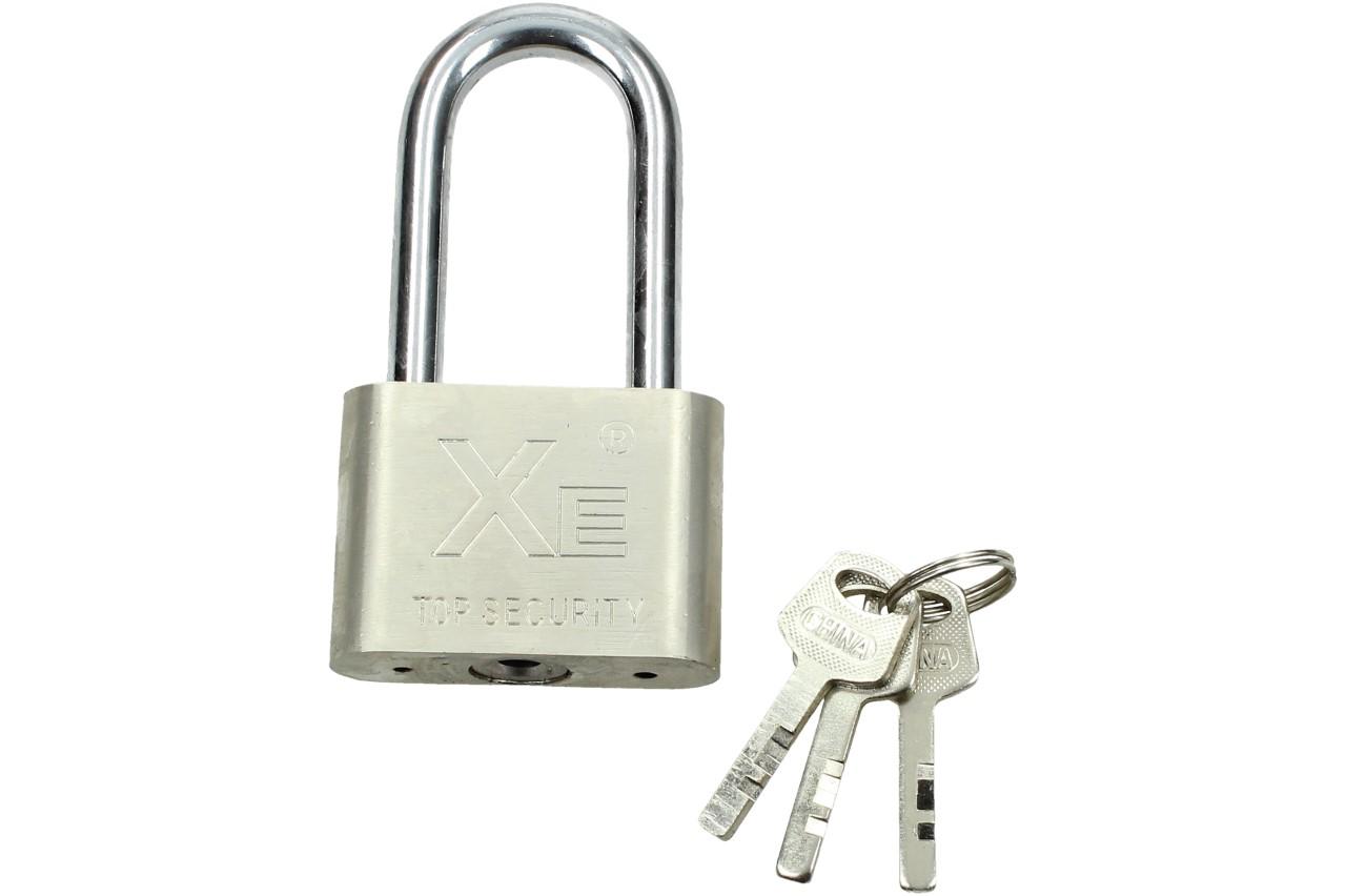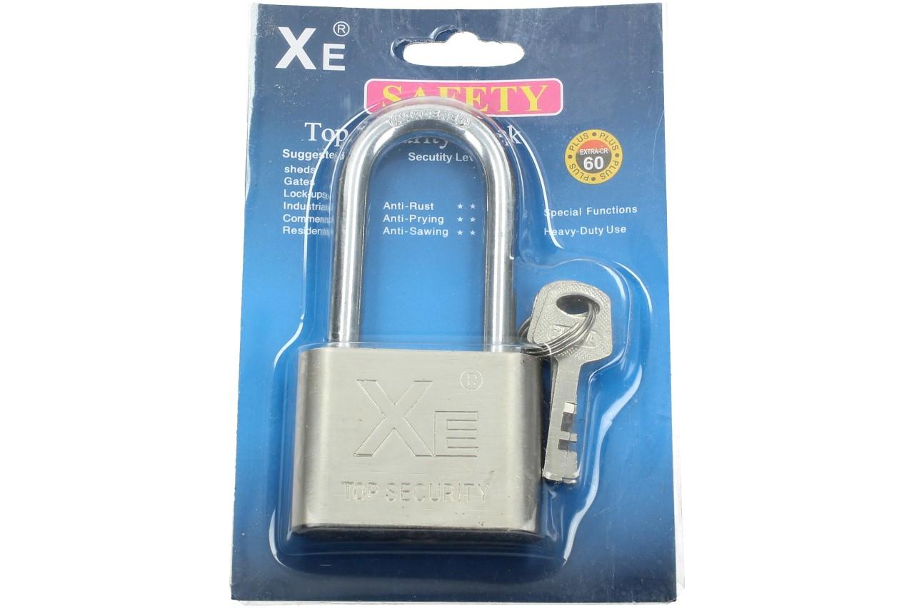 Potřebujete 100% zabezpečit určitý objekt, jako je kůlna, sklep, vrata, kolo, kočárek či jiné předměty? S tím Vám pomůže tento masivní 60mm visací zámek od společnosti Xe. Díky speciálnímu zpracování ho nelze vypáčit ani přeříznout. Pokud ho použijete pro venkovní účely, nemusíte se bát jeho zrezavění. V balení také naleznete 3 klíče.