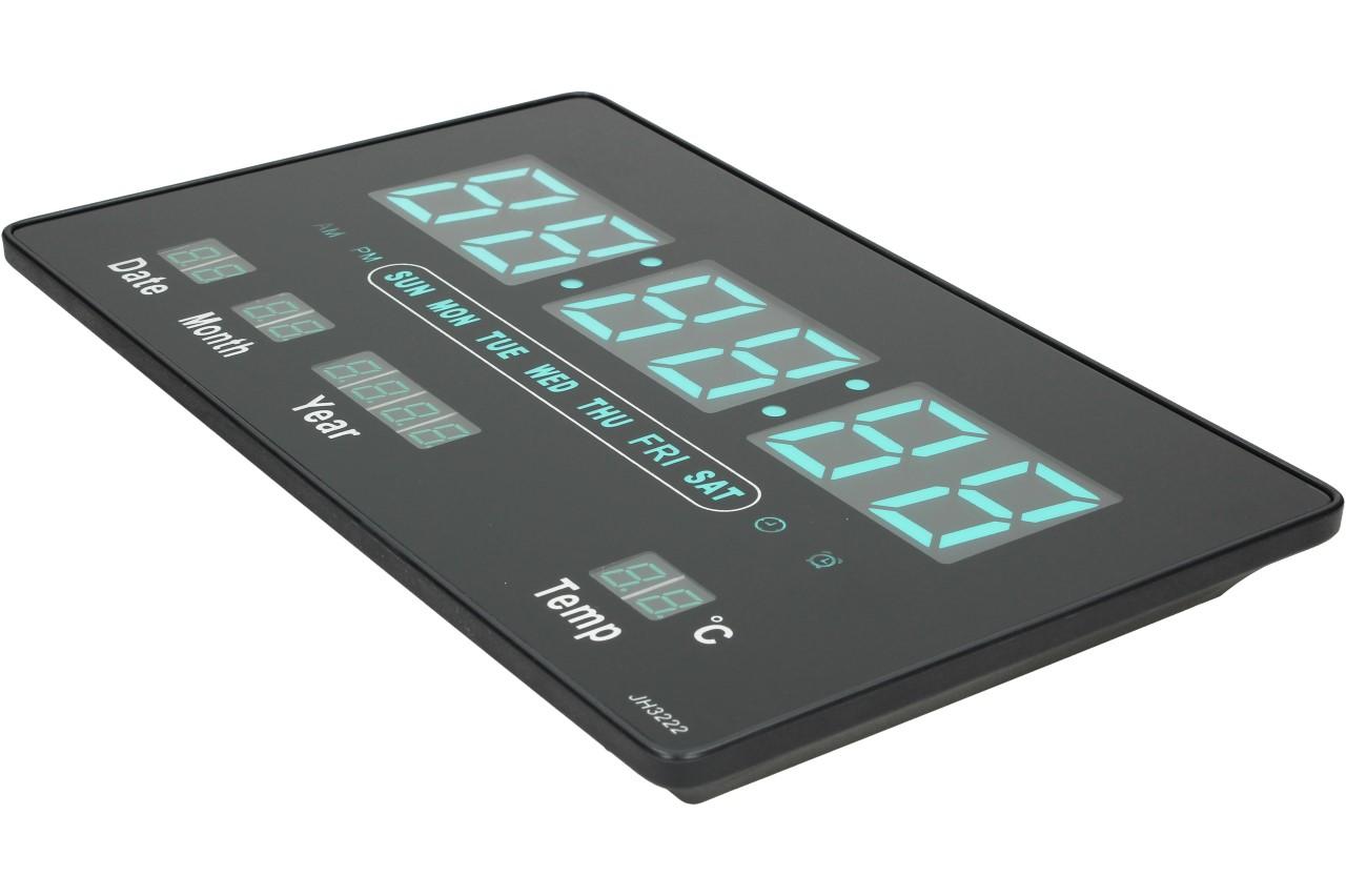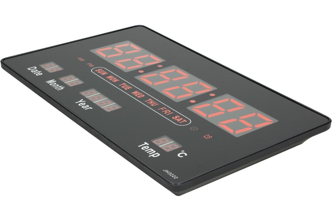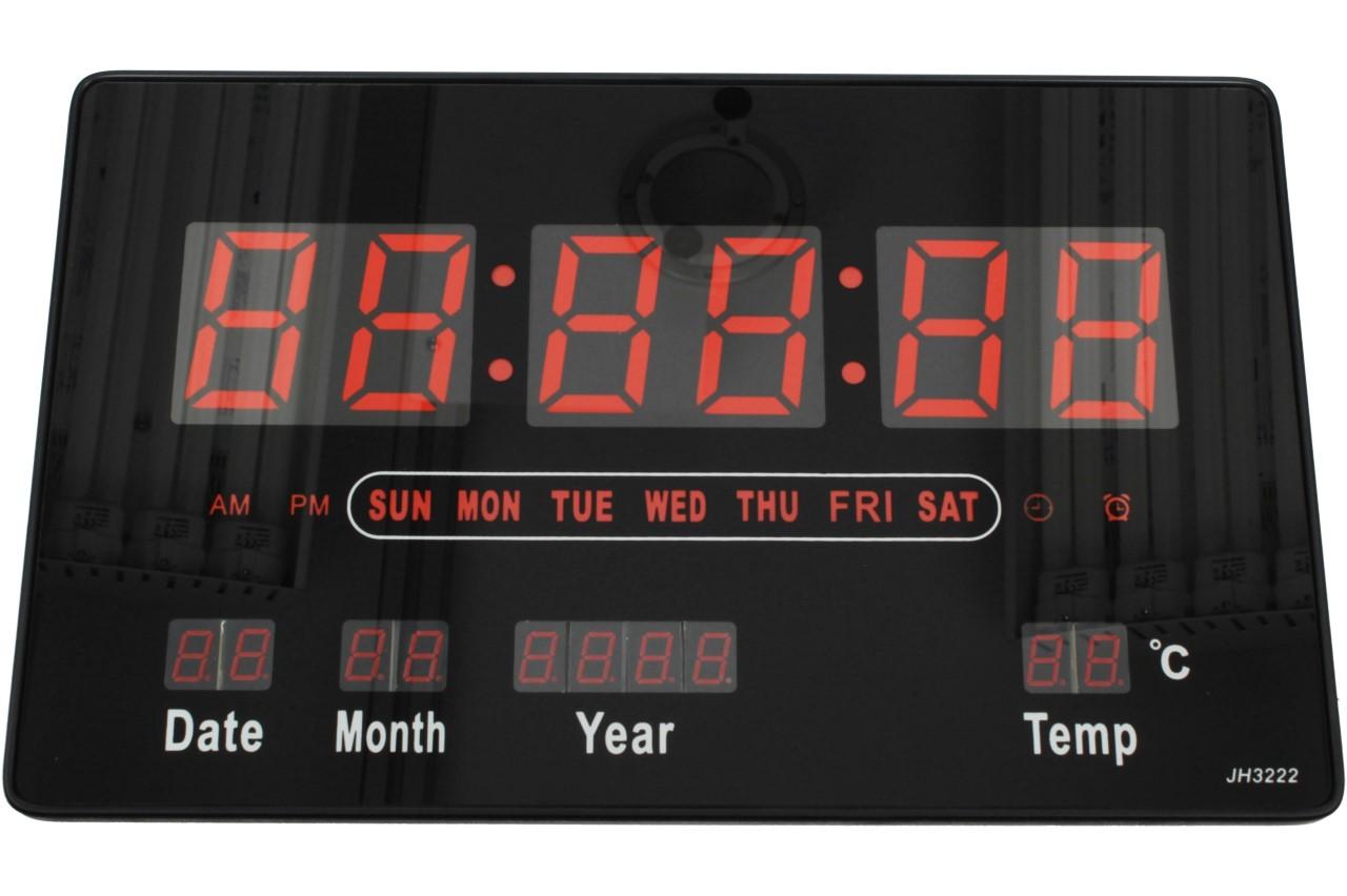 Tyto digitální hodiny JH3222 Vás překvapí svou jednoduchostí a přehledným LCD displejem, který je podsvícený červenou nebo zelenou barvou a dodá hodinám zajímavý vzhled. Obsahují pouze 4 tlačítka na celou manipulaci a návod, jak na to obdržíte v balení. Můžete je pověsit na zeď, díky otvoru na zadní straně nebo jen o něco opřít. Jsou vhodné do bytů, kanceláří, vstupních chodeb, prodejen, čekáren atd. Nastavitelný budík nebo čas pro upozornění např. pracovní doby nebo jiného pravidelného času je samozřejmostí. Na displeji se vám dále zobrazuje pokojová teplota, datum i s rokem, jaký je den a samozřejmě čas. Velikost čísel je 5 cm, tudíž se už nemůžete vymluvit na to, že jste přehlédli čas. Napájení provádíte pomocí 5V adaptéru, který je součástí balení.