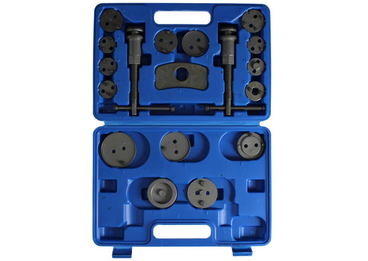 Tato 18ti dílná praktická sada je nezbytný profesionální pomocník na opravu vozidel, které jsou vybaveny kotoučovými brzdami. Díky této sadě pohodlně a bez prodlevy zatlačíte brzdový pístek a vyměníte tak snadno brzdové destičky.