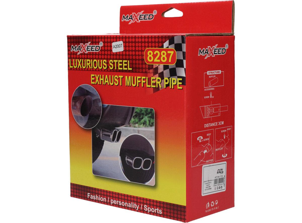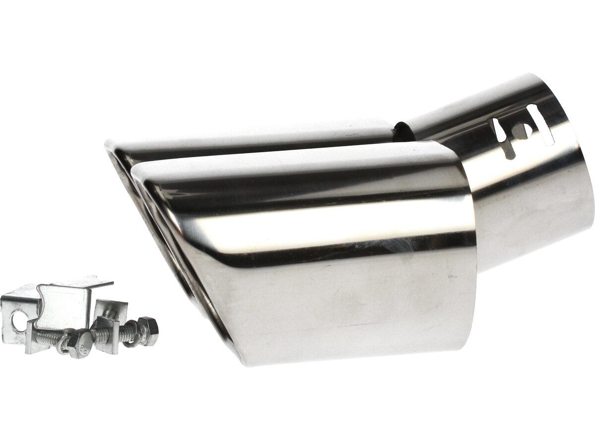 Jednoduchá montáž, montážná šroubky jsou součástí balení. Maximální rozměr trubky, na kterou lze koncovku výfuku namontovat je 6cm, průměr zadních čtvercových rour je 7 cm.