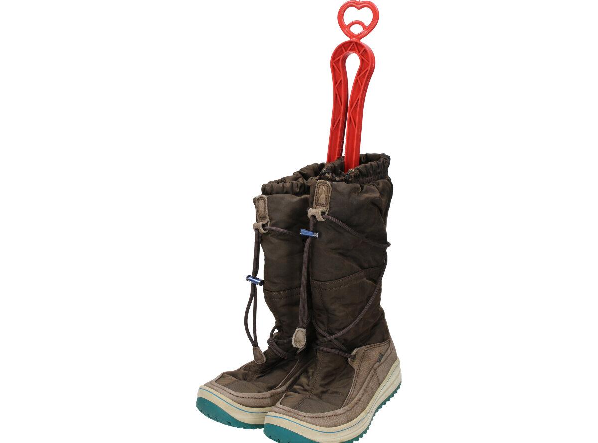 Držák na kozačky nebo na vysoké boty jednoduše dáte dovnitř do bot a pak jej pověsíte jam potřebujete.