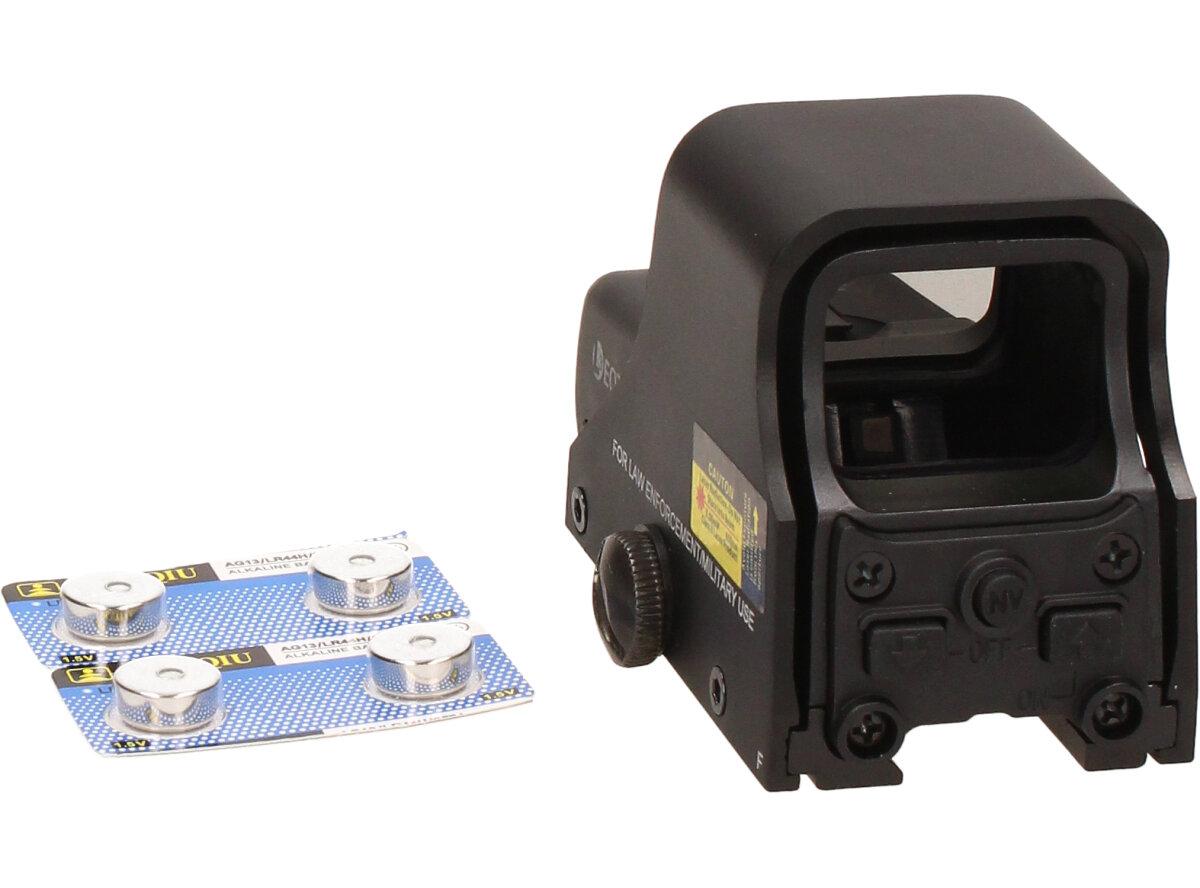- 1 x holografický zaměřovač s červeným/zeleným bodem (baterie jsou součástí dodávky)