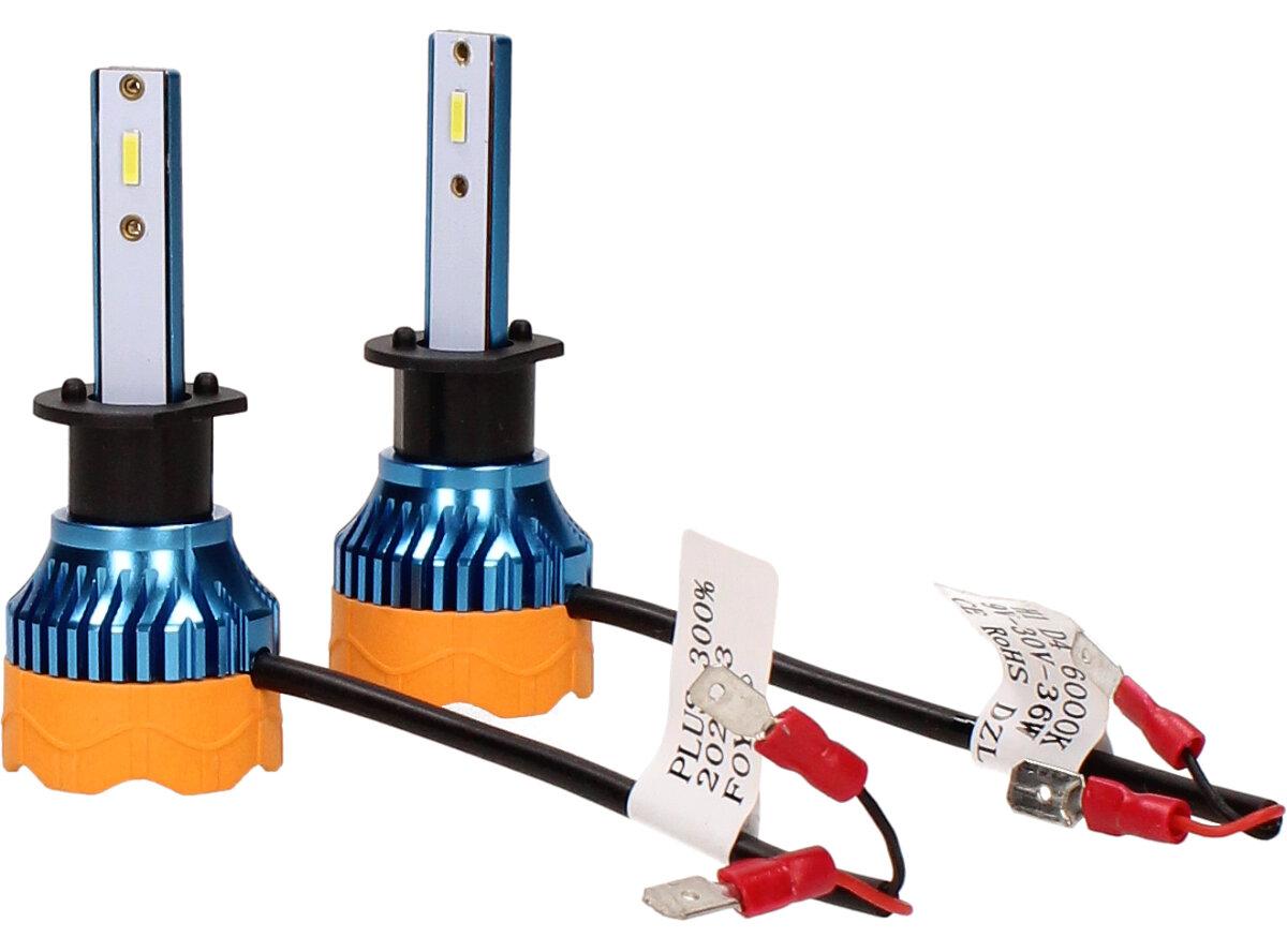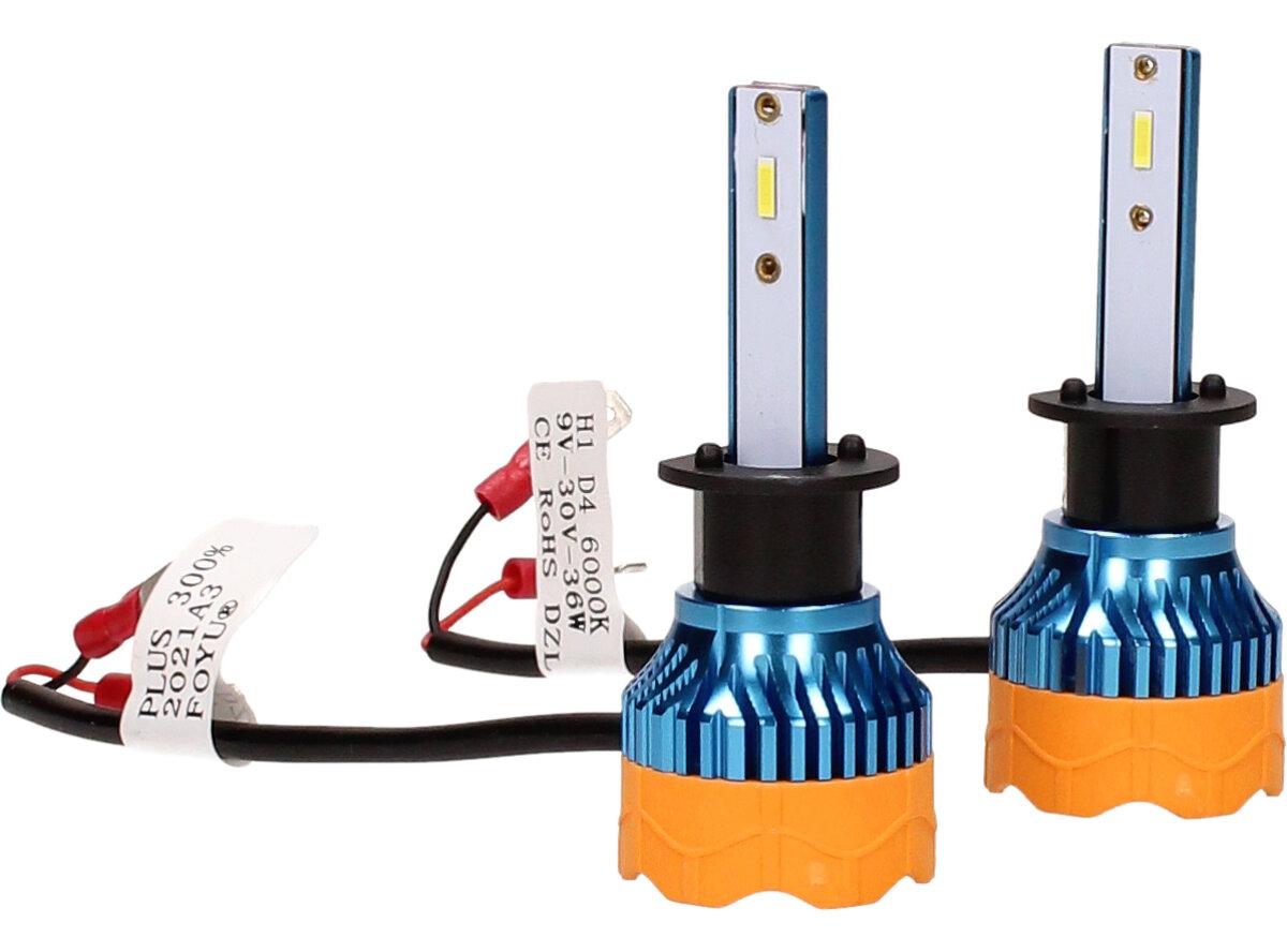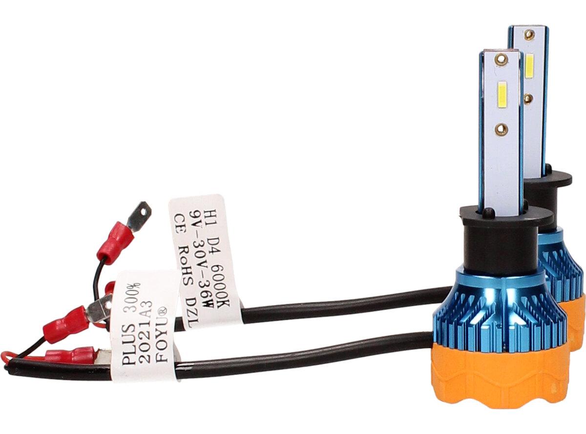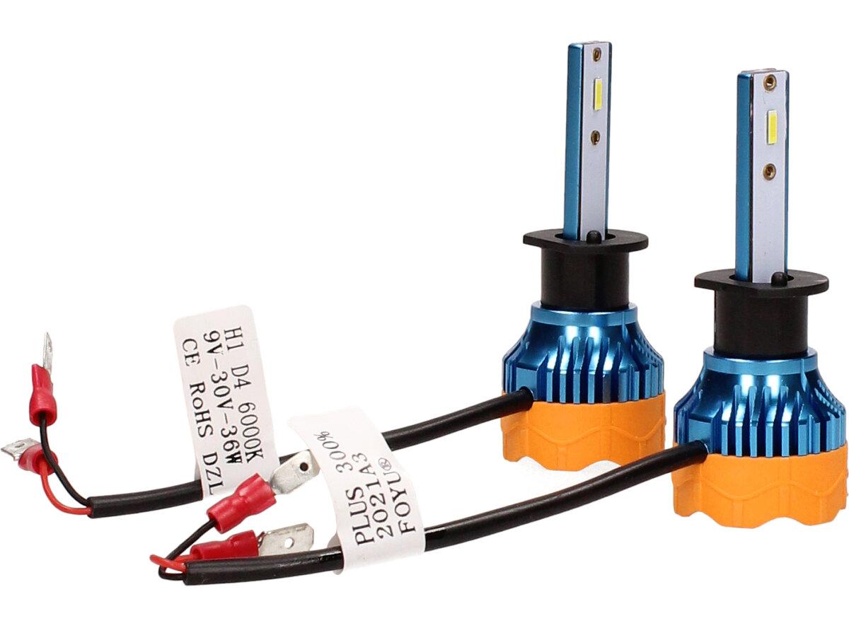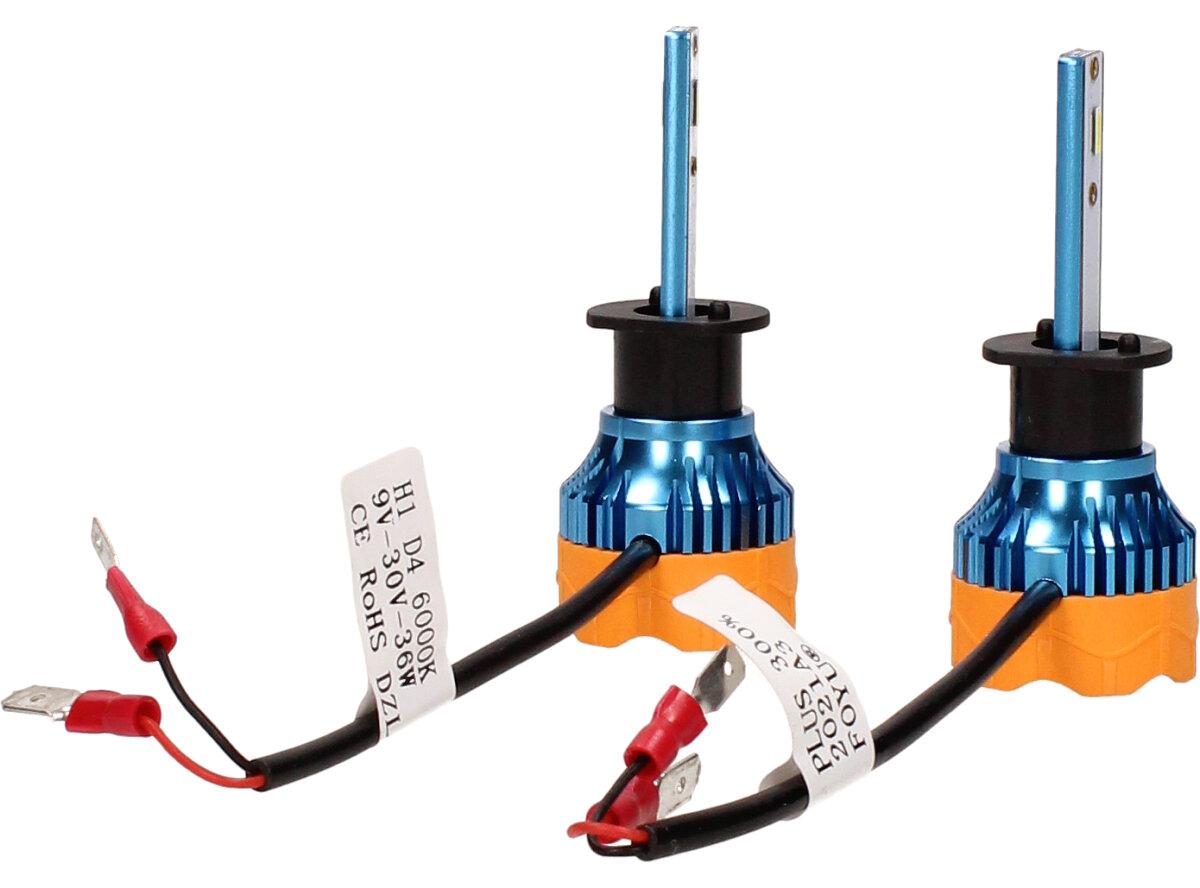 Velice odolná LED H1 D4 žárovka s barvou světla 6000K (studená bílá) sada 2 kusy do světlometu do auta na 12V, 24V jako náhrada za klasickou nevýkonou žárovku H1.