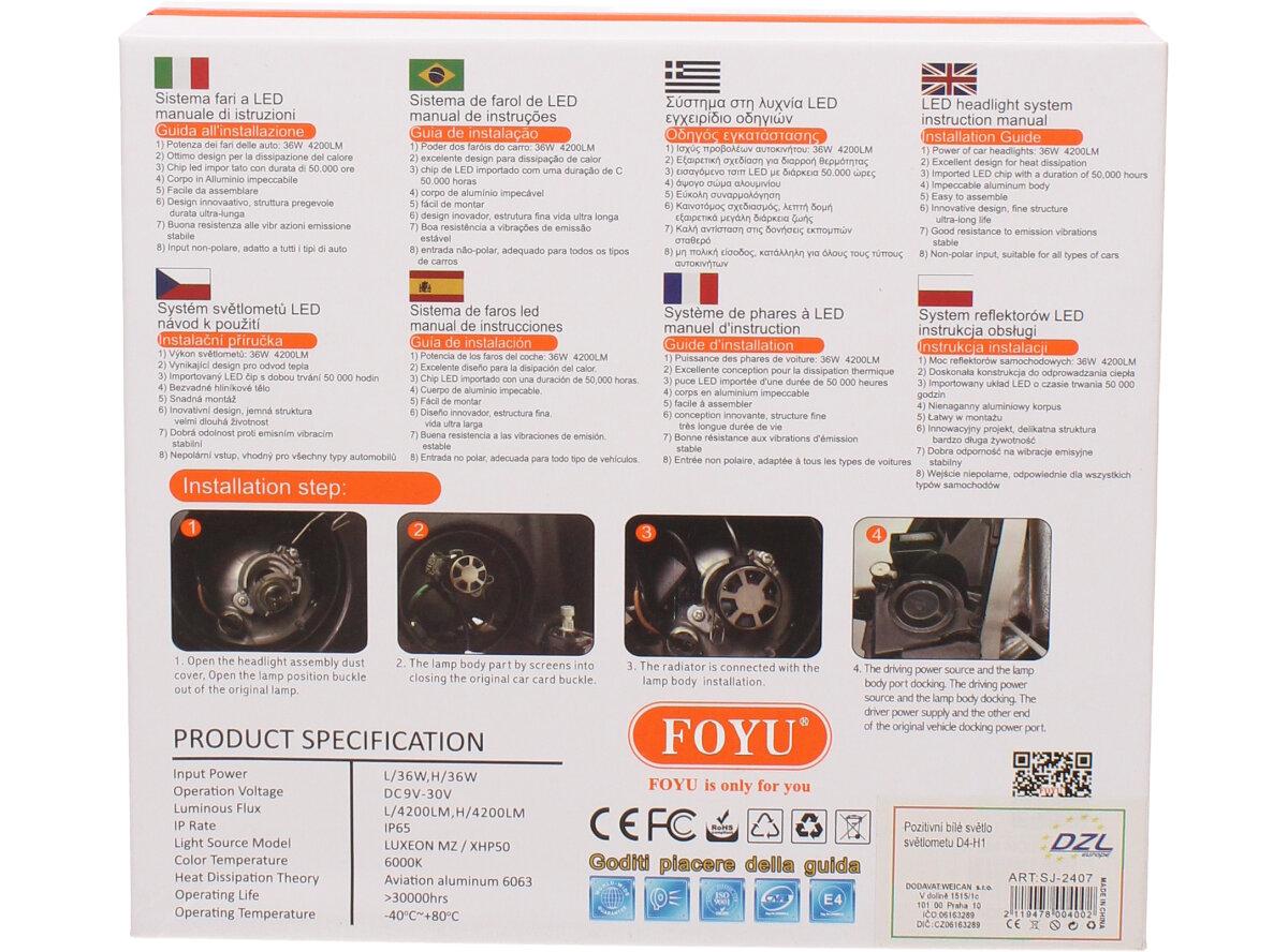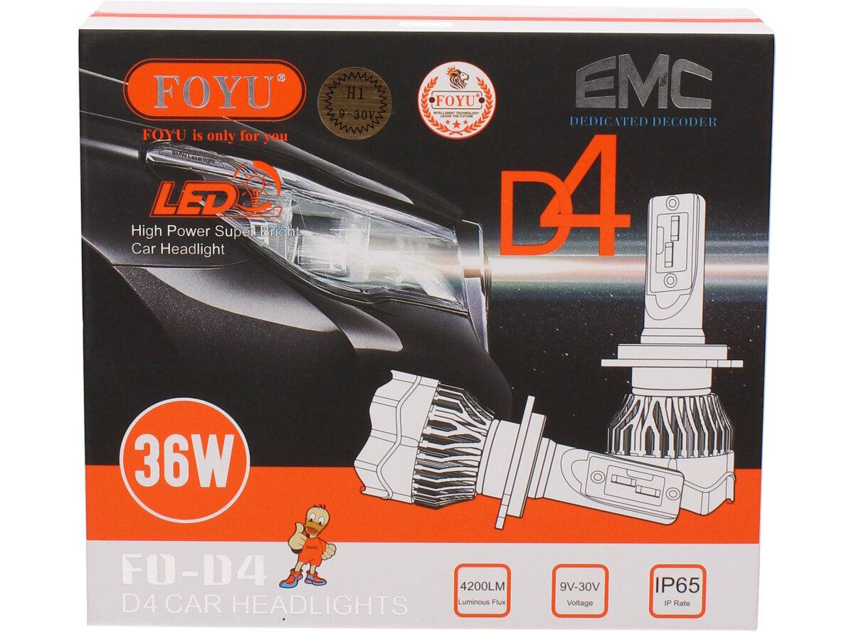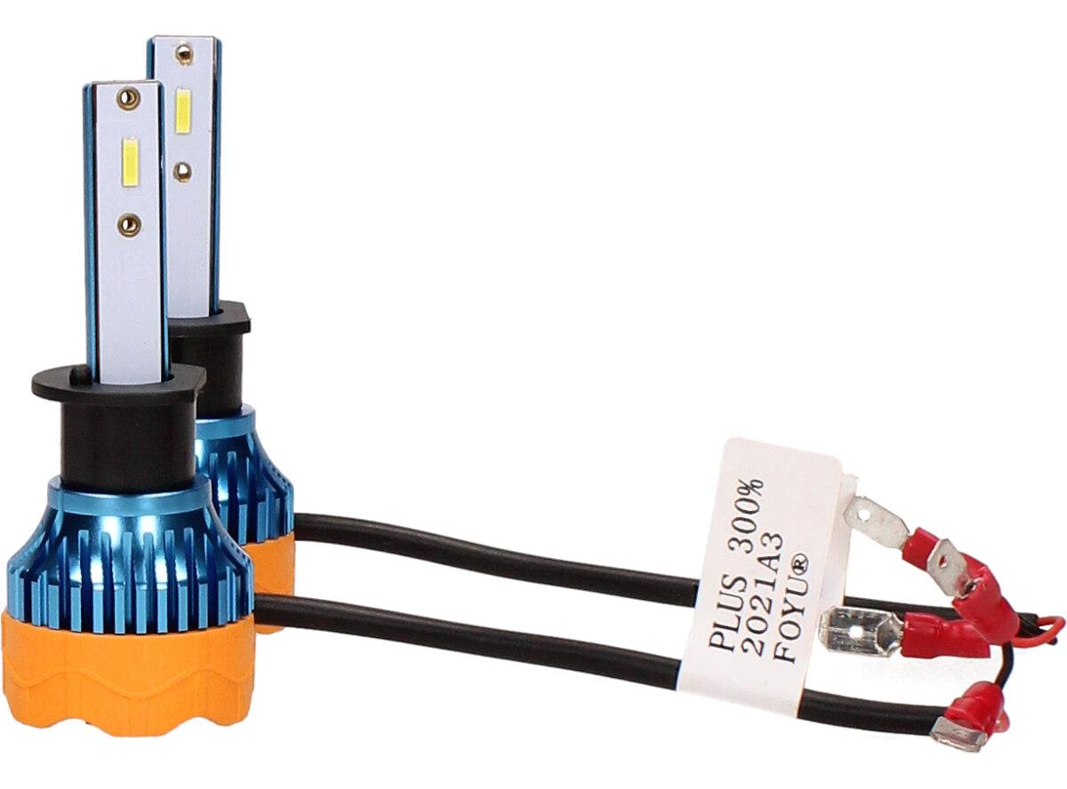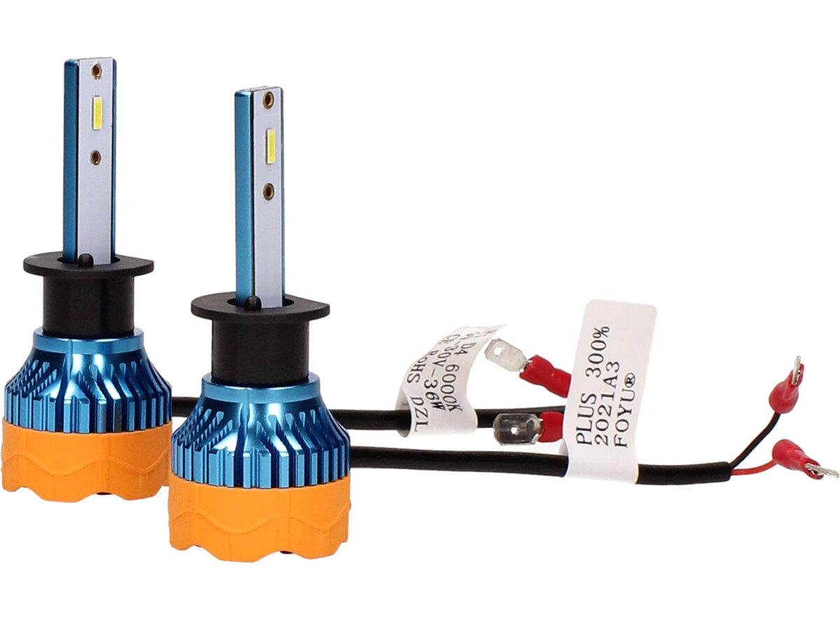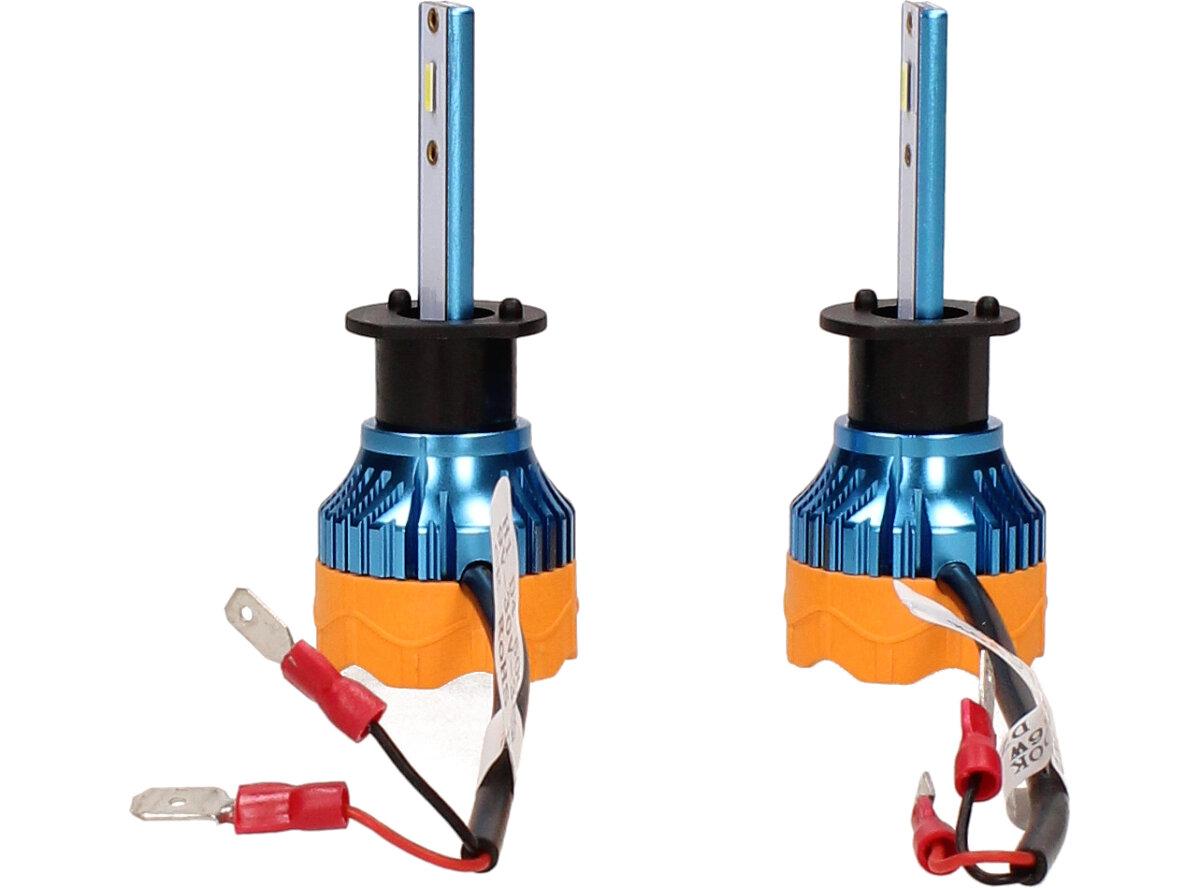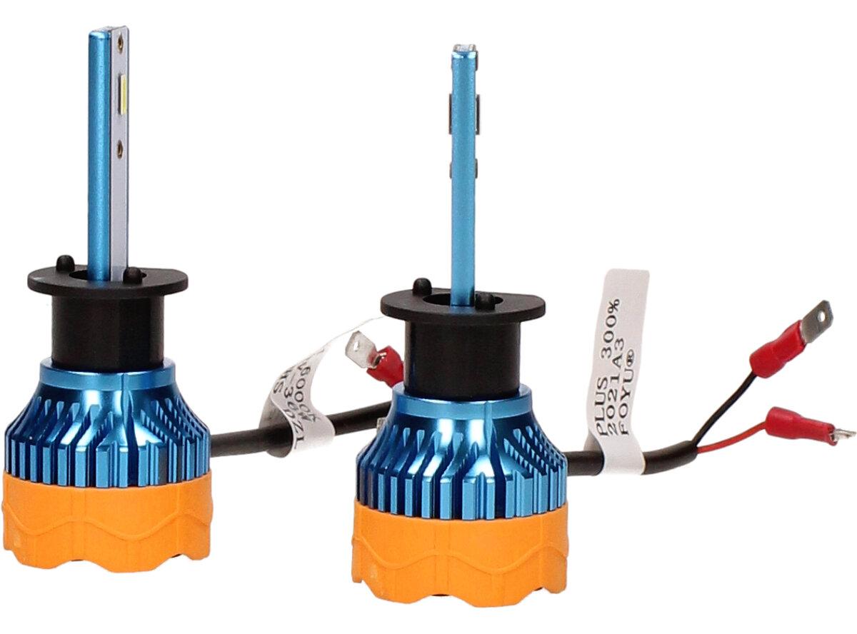 Velice odolná LED H1 D4 žárovka s barvou světla 6000K (studená bílá) sada 2 kusy do světlometu do auta na 12V, 24V jako náhrada za klasickou nevýkonou žárovku H1.