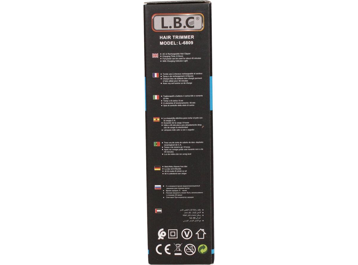 Zastřihávač na vlasy L.B.C L-6809 se hodí pro úpravu vlasů. Tento model nabízí nerezové břity, jež se postarají o perfektní úpravu vašeho jedinečného vzezření. Požadovaného zastřižení dosáhnete za pomoci nástavce, které je součástí balení. Tento typ zastřihovače je schopný stříhat do nejmenší délky 3 mm. Nejvíce si poradí s 12mm délkou. Výkon: 3W - Baterie (vyměnitelná) - Doba nabíjení: 8 hodiny; - normální provoz:- Napájení: AC 220-240V 50/60 Hz. - napájecí adaptér