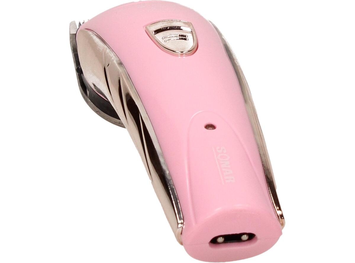 Kvalitní do ruky padnoucí holící strojek Sonar Animal v růžové barvě v kombinaci s chromem. Stříhací strojek je napájený ze sítě 220V a je nabíjecí, můžete tak stříhat buď s kabelem zapojeným v síti 220V nebo bez něj. V sadě naleznete 1x plastový hřeben, 4 kusy nástavců, díky kterým nastavíte délku stříhání a trafo, které zapojíte do zásuvky.