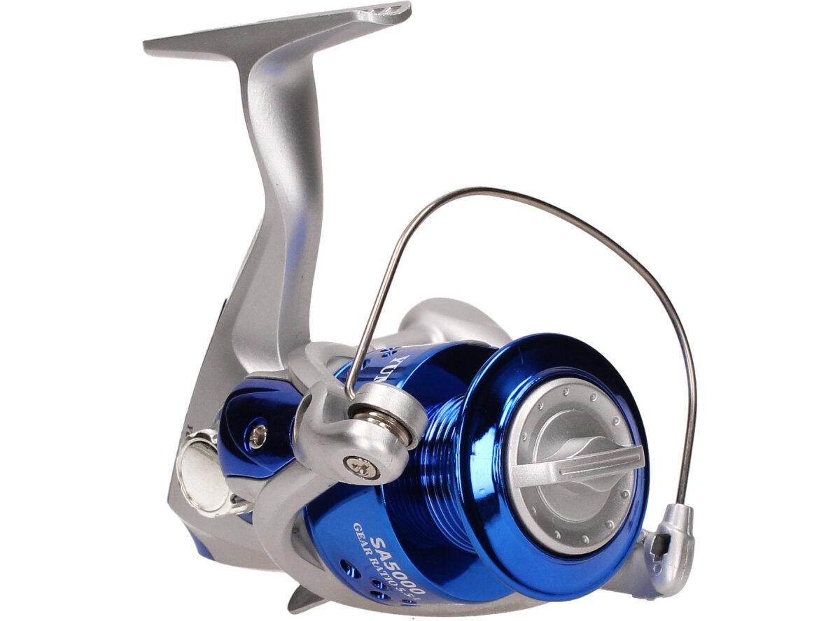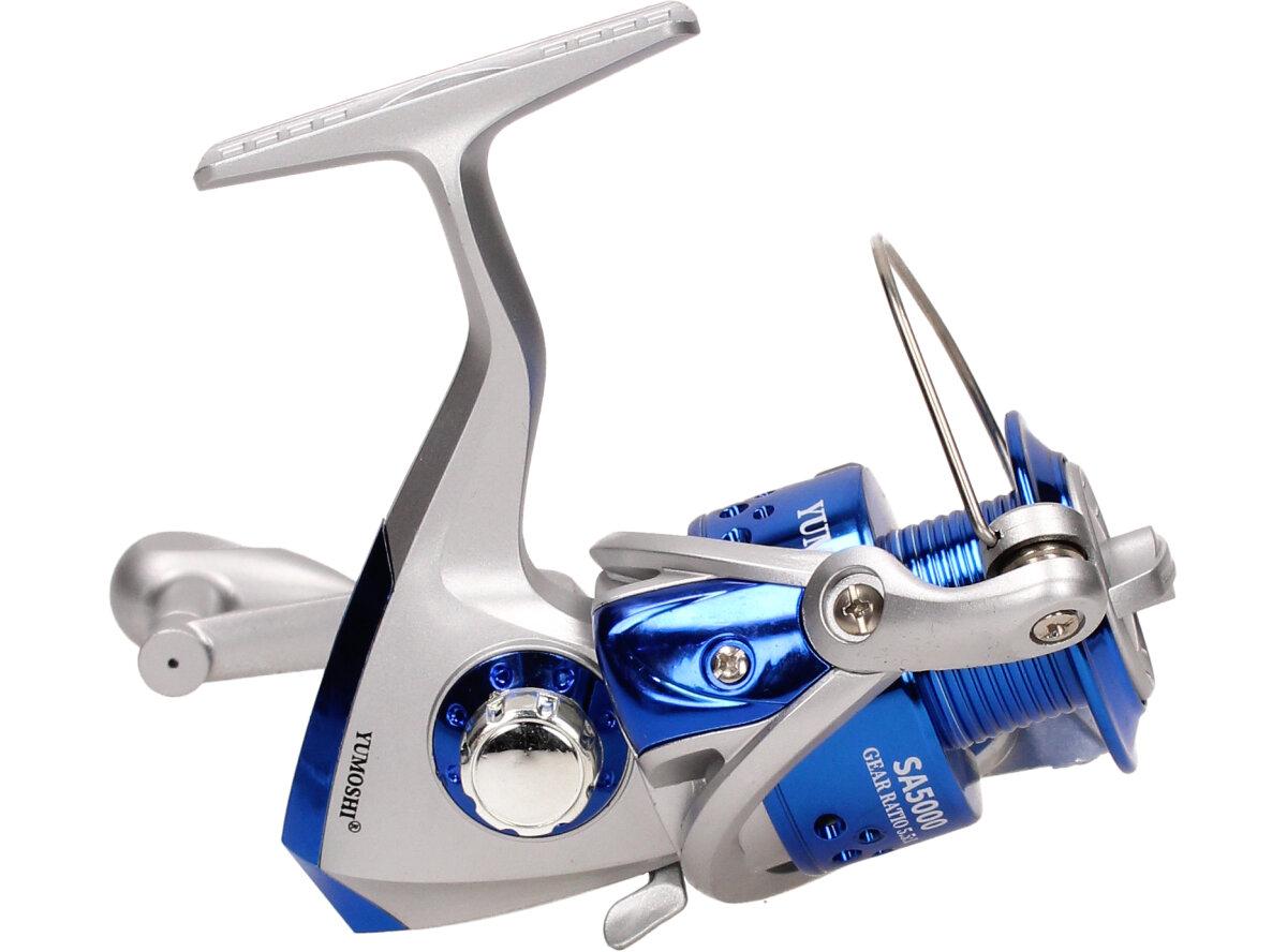 Rybářský naviják YUMOSHI SA5000 Je nedílnou součástí výbavy pro každý rybářský prut. Naviják s kvalitní mechanikou. Rybářský naviják obsahuje: AVS Anti vibrační systém, Zjednodušenou a praktickou manipulaci, vynikající oscilační systém, mosazné ozubené kolo, převodový poměr 5:1, Vyvážené zařízení, jemnou zadní brzdu, nastavitelnou kličku. Velká výhoda nastavitelné kličky je, že si naviják může každý přizpůsobit podle sebe buď na levou stranu a nebo na pravou stranu. Tudíž naviják mohou obsluhovat praváci i leváci.