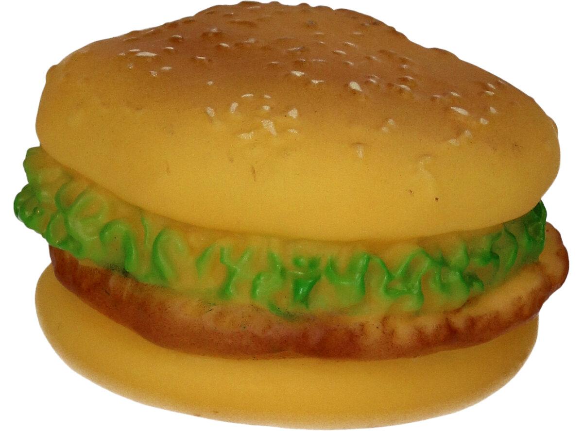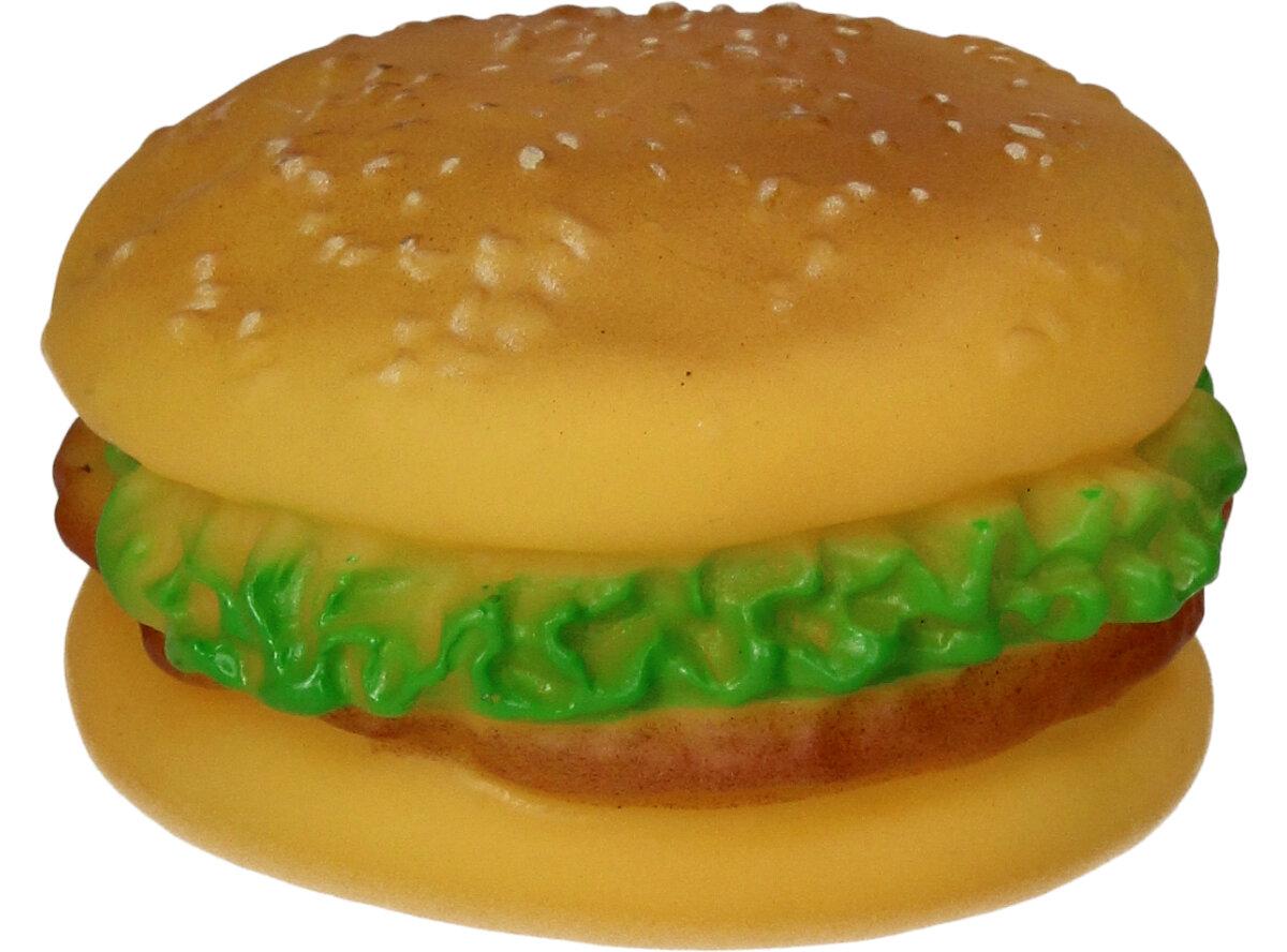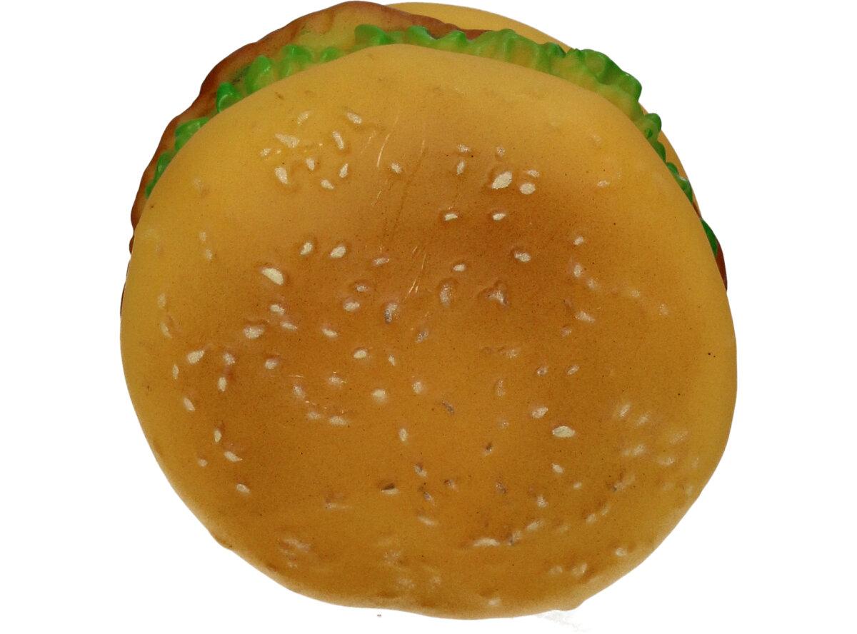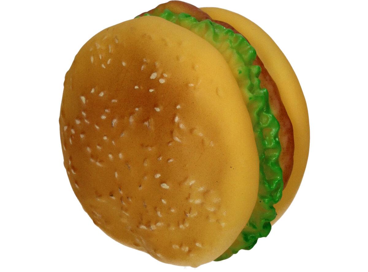 Pískací hračka ve tvaru Burgru, po zmáčknutí píska. Velikost 8x5cm
