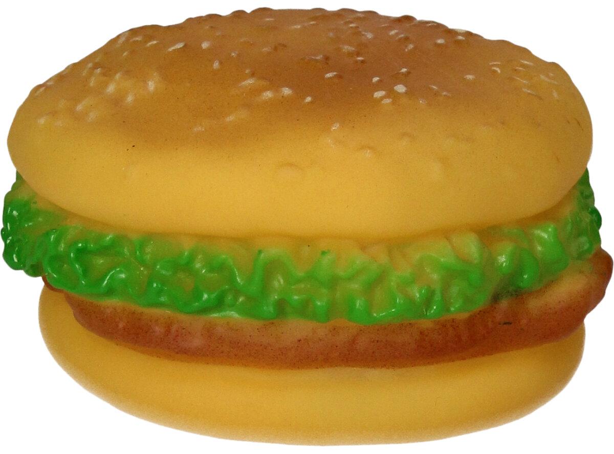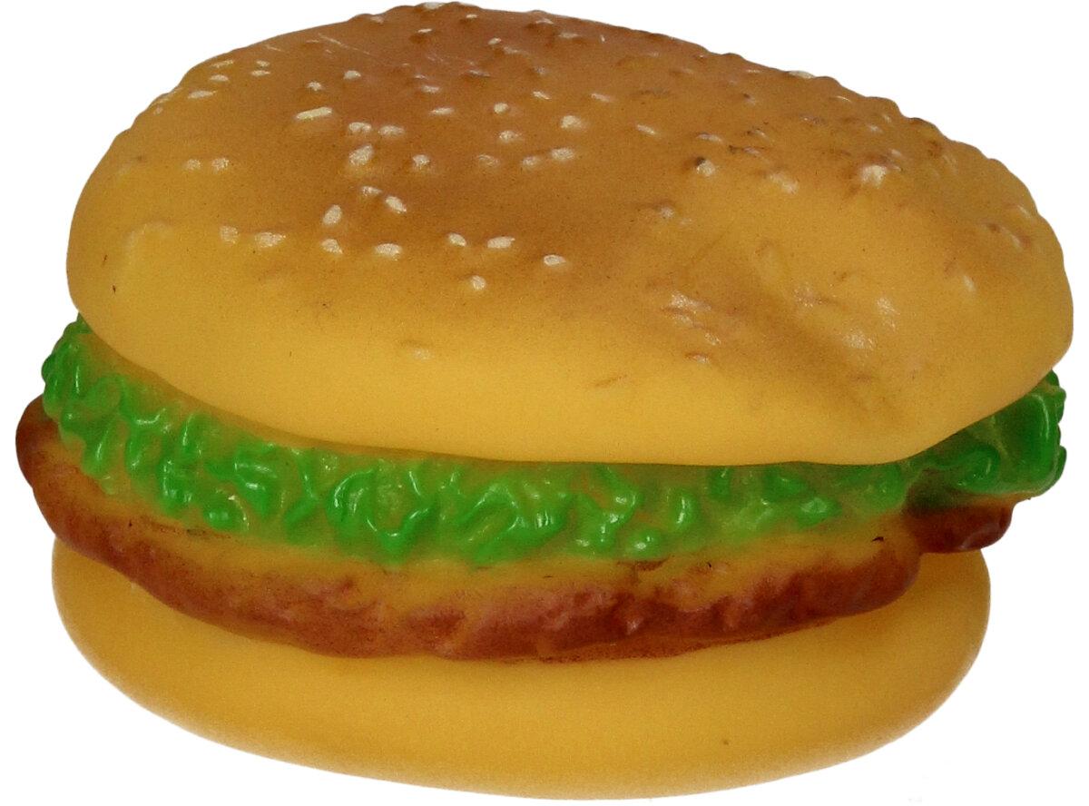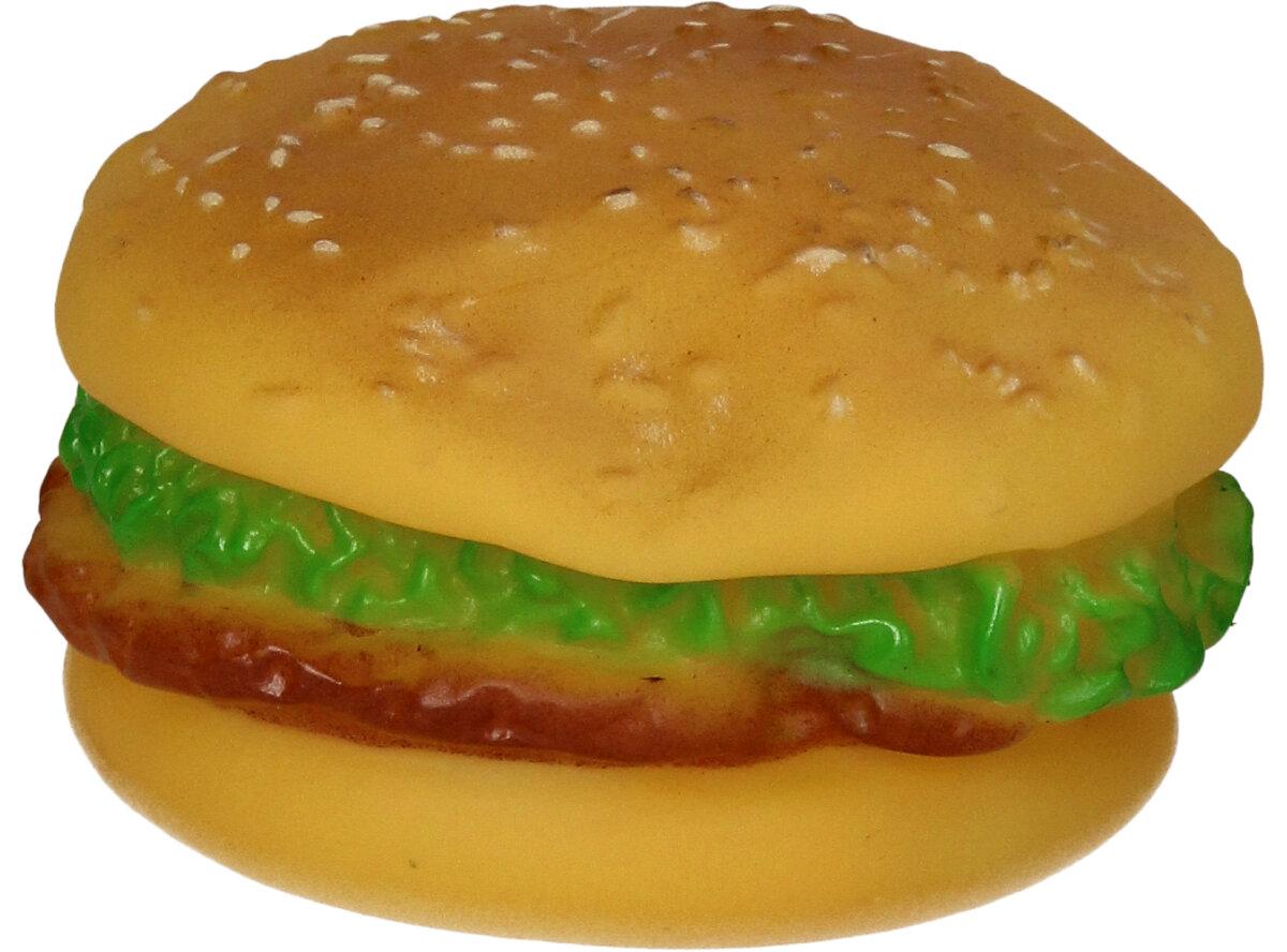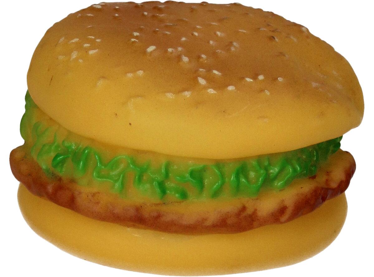 Pískací hračka ve tvaru Burgru, po zmáčknutí píska. Velikost 8x5cm