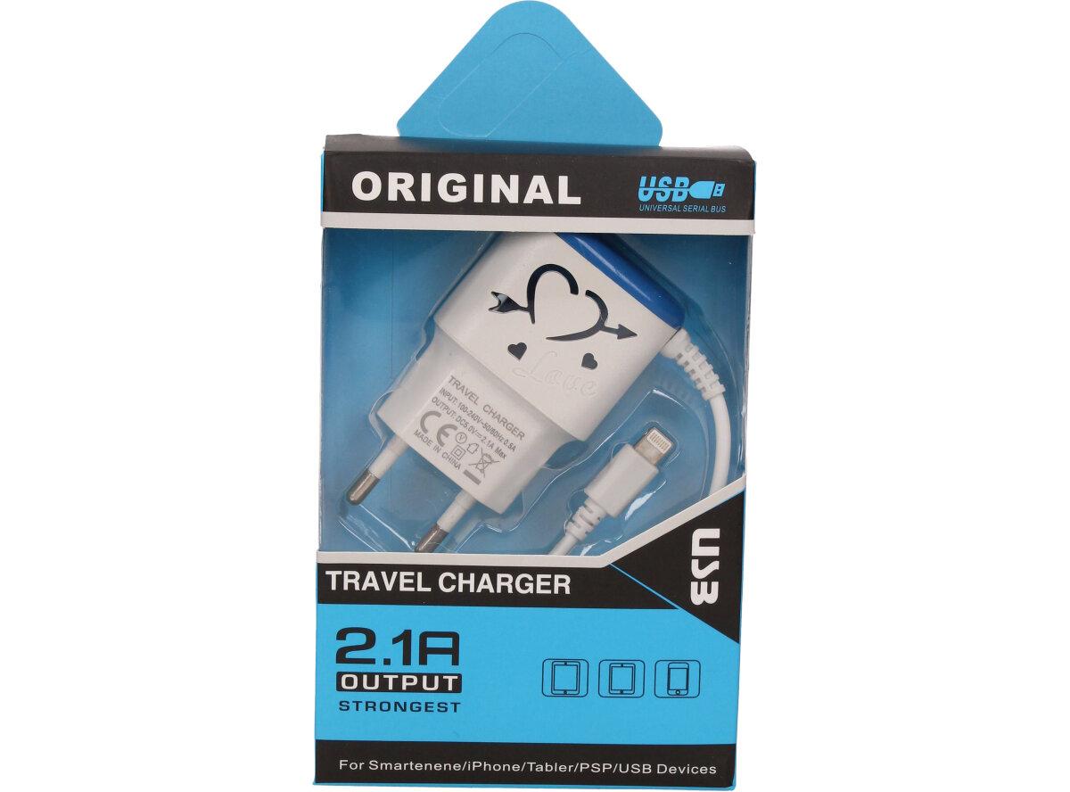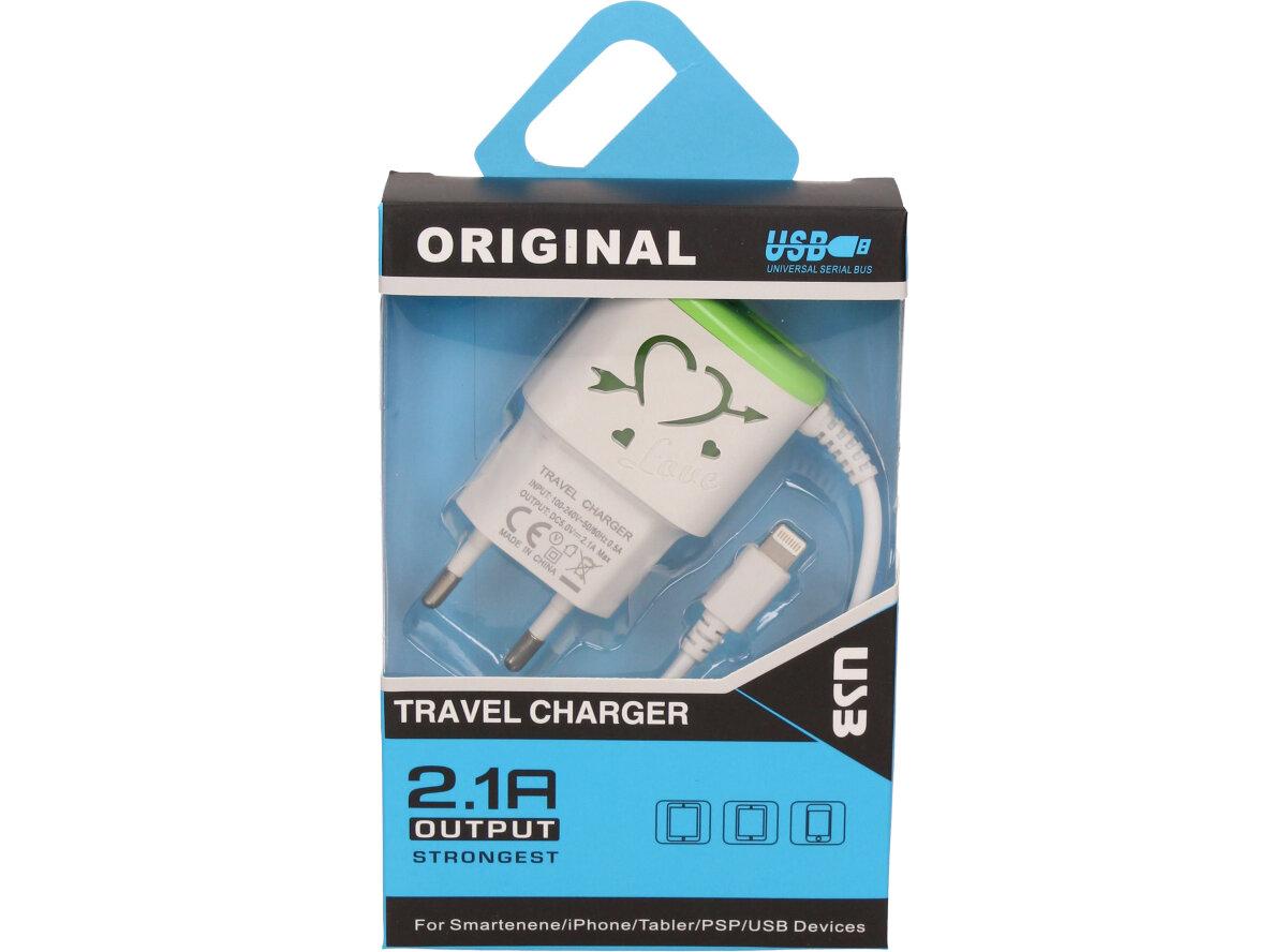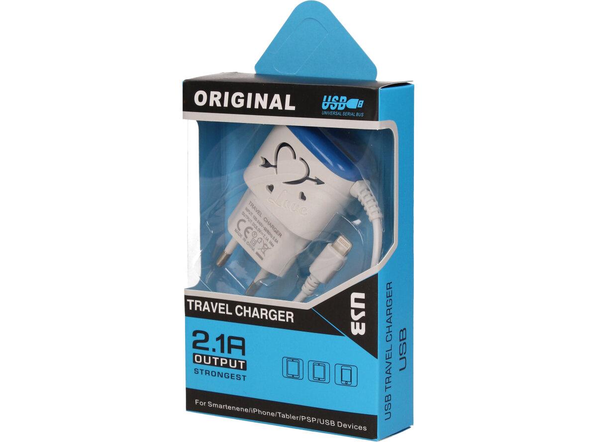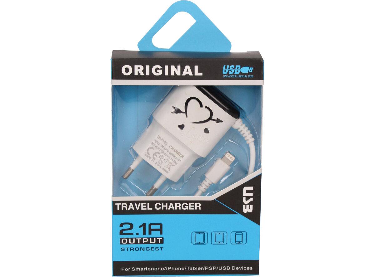 Praktická nabíječka pro telefony a zařízění Iphone s dlouhým 85cm kabelem a lampičkou, která při zastrčení do zásuvky svítí.
