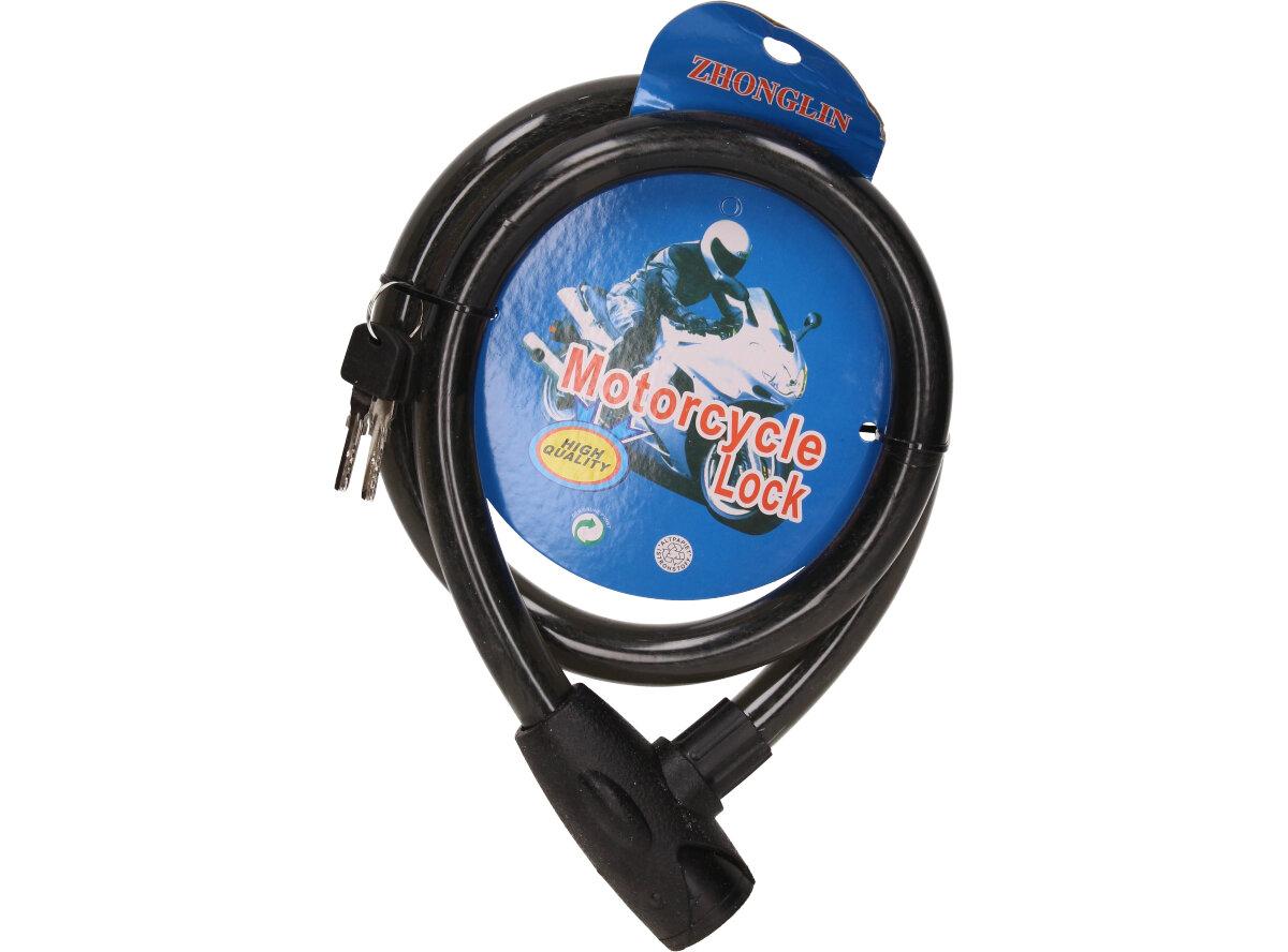 Pevný a robustní Zámek na motorku 120cm s dvěmi klíči a průmerem 2,2cm upletený z pevného ocelového lana v bužírce