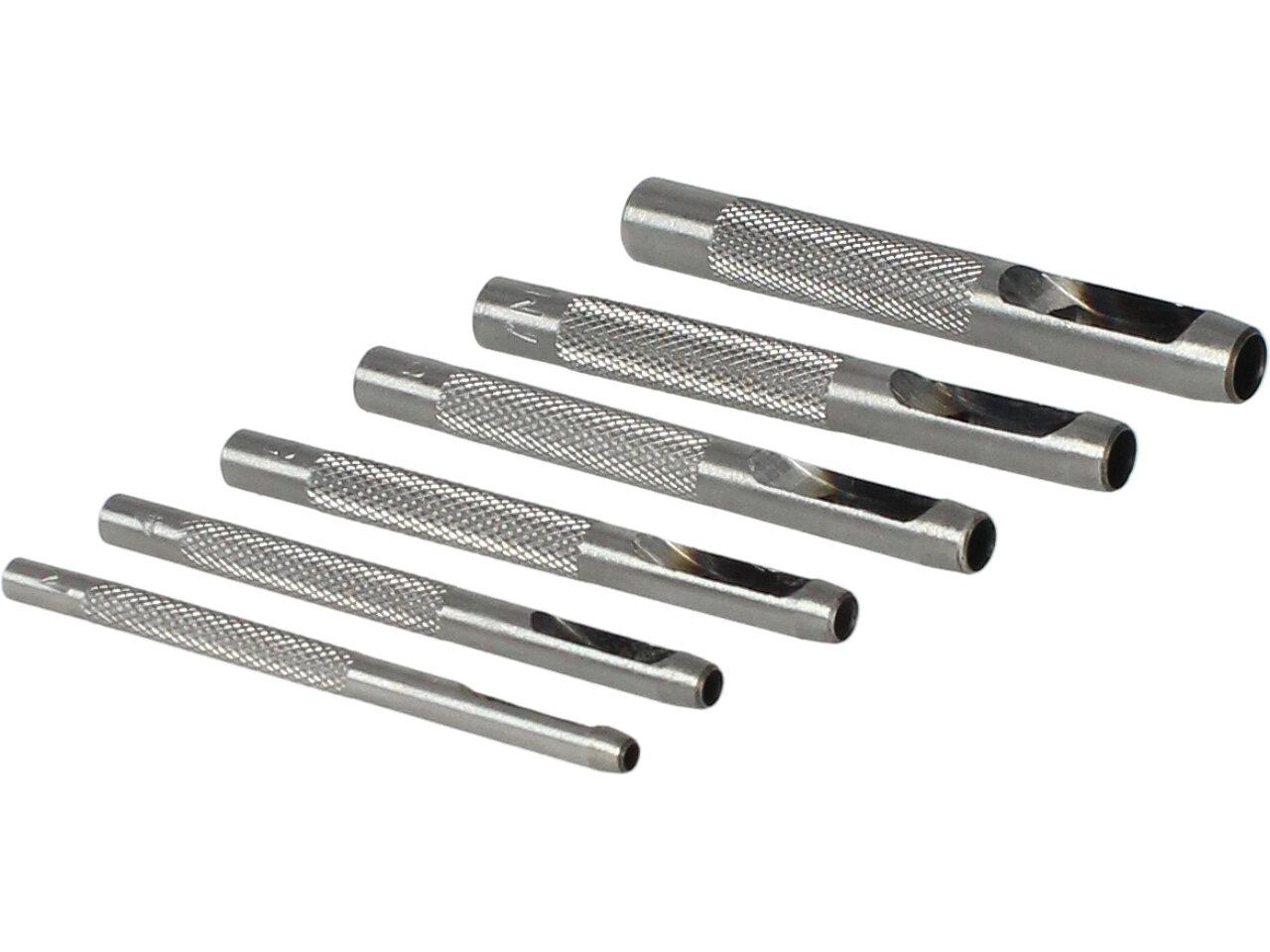 Sada děrovaček, 6 ks Jin Feng je domácí sada děrovač pro vytvoření dírky v opasku, brašně a jiných kožených výrobcích. Vhodné pro děrování děr do kůže, pryže atd. Ø 3; 4; 5; 6; 7; 8. Materiál: kalená uhlíková ocel.