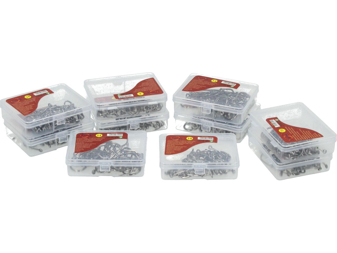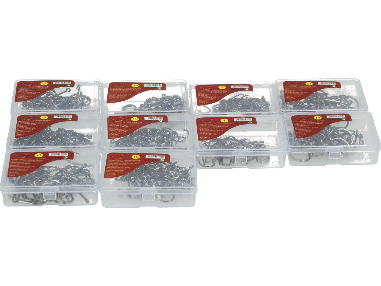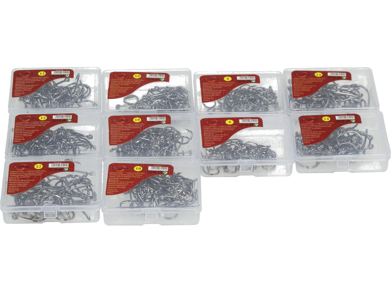 V sadě hluboko-mořských korozivzdorných nerezových rybářských háčků se nachází 4 velikosti háčků. Masivní kované speciálně broušené s bajonetovým ostřím a očkem. Háčky jsou magnetické, staší přiložit kovový předmět a háček se chytí, což vám ulehčí vyndávání bez úrazu. Velmi pevné a ostré. Velikosti 8, 10, 12, 14.Celkem 490 kusů.